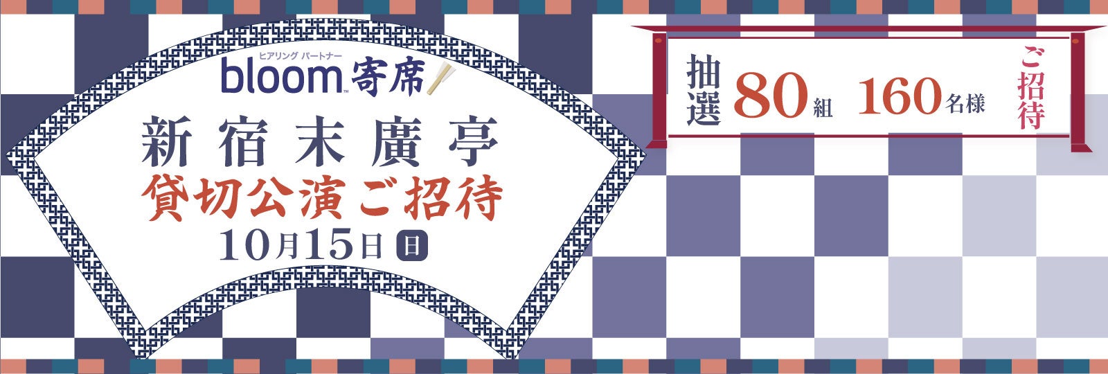 期間中、対象の補聴器専門店ブルームにて対象の補聴器本体をお買い上げの方の中から、抽選で80組(160名様)をブルーム寄席にご招待いたします。