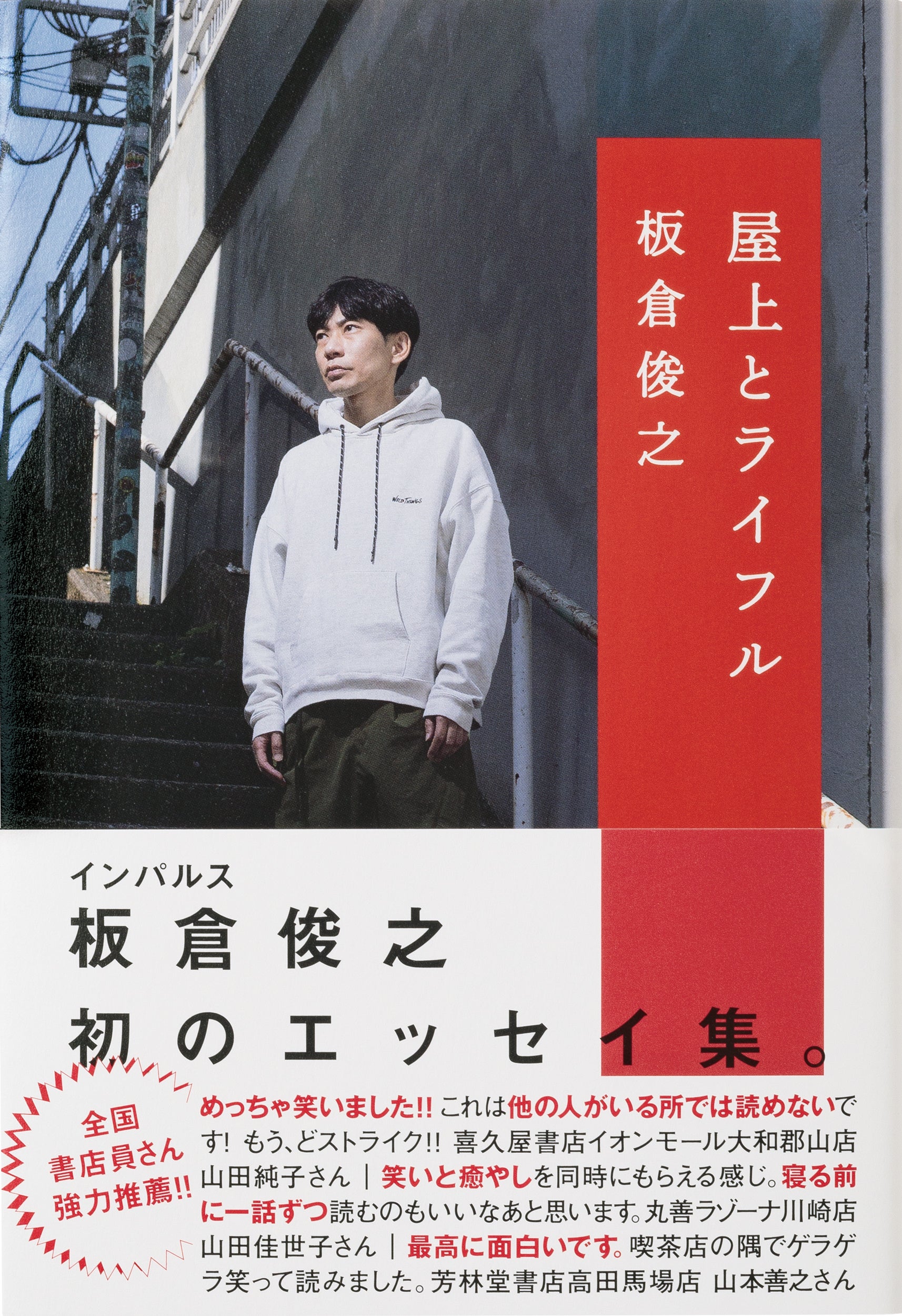 お笑い芸人・インパルス板倉さんの初エッセイ集『屋上とライフル』が8月1日(火)に飛鳥新社から発売されます。