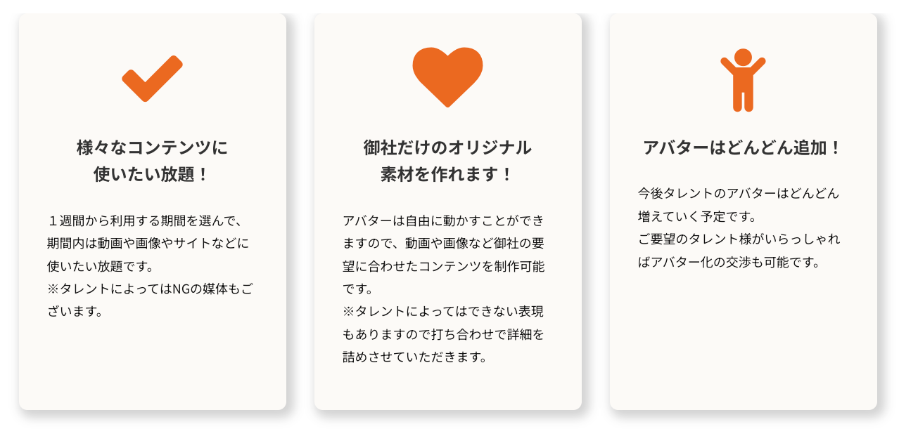 ・契約期間中、タレントのアバターを様々なコンテンツに使いたい放題!