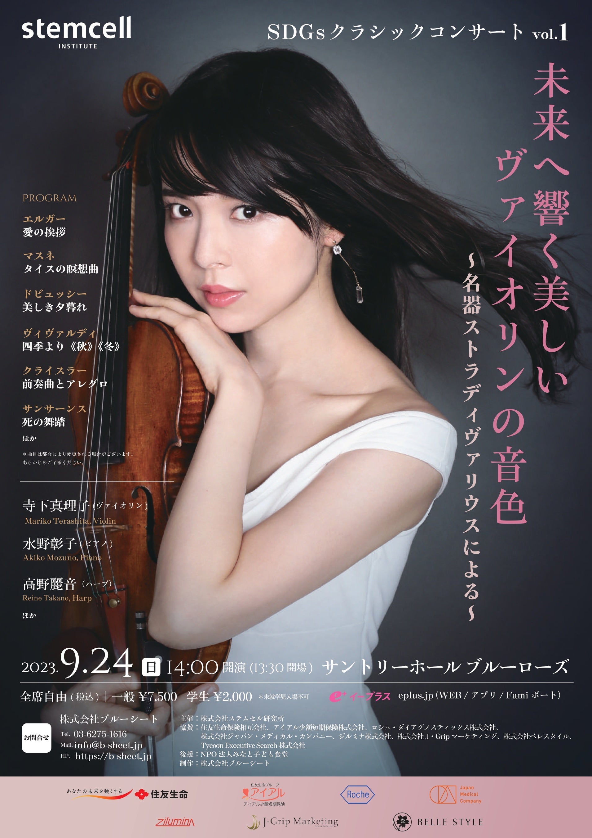 初の音楽イベント「SDGsクラシックコンサート vol.1 未来へ響く美しいヴァイオリンの音色~名器ストラディヴァリウスによる~」を2023年9月24日に開催いたします。