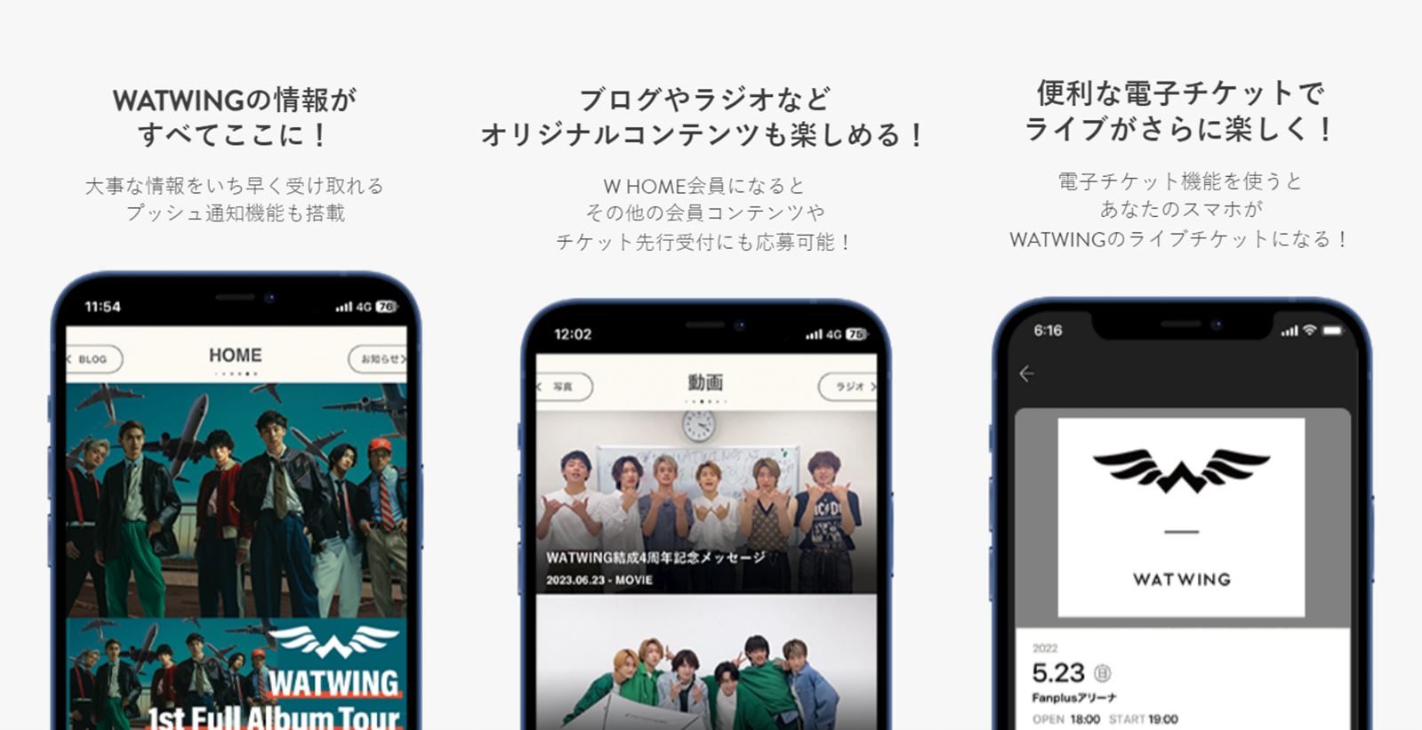 また、2023年8月22日(火)に開催される「WATWING First Full Album One Man LIVE “Where to Forward”」のW HOME先行受付で販売されたチケットは、「Fanpla Appli」内の「W HOME APP」にて発券いたします。