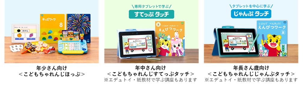 1988年に開講した「こどもちゃれんじ」は、育ちに合った遊び・学びで、おうちの方をサポートし、子どもの可能性を広げる商品・サービスを提供し続けています。ブランドキャラクター「しまじろう」と一緒に豊かな体験を通して未来を切り開く力を育む0~6歳向け教材のほか、英語教材、テレビ番組、コンサートなどの成長を支援する商品・サービスを展開しています。