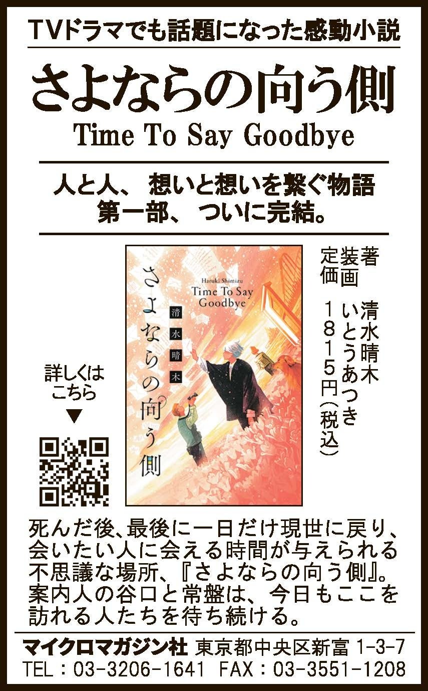 マイクロマガジン社(東京都中央区)は、『さよならの向う側 Time To Say Goodbye』を8月3日の読売新聞に掲載いたしました。
