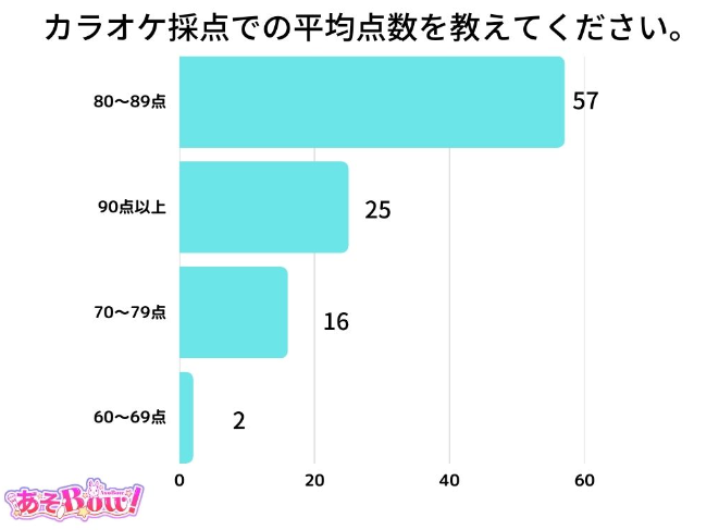 合同会社Makima(https://makima.co.jp/)が運営するアミューズメント情報メディア「あそBow!」(https://cocoaorei.work/asobow/)は、日本全国の10代以降の男女の方を対象に「カラオケ採点での平均点数を教えてください。」についてのアンケート調査を実施しました。