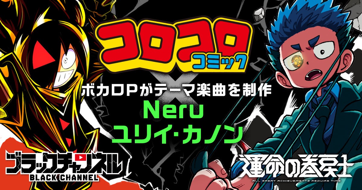 コロコロコミックの人気作品をテーマに、複数の人気ボカロPが楽曲を制作するコロコロコミック×ボカコレのプロジェクト。第2弾となる今回は、ボカロPのNeruとユリイ・カノンがコロコロコミックで連載中の『ブラックチャンネル』(作者:きさいちさとし)と『運命の巻戻士』(作者:木村風太)のテーマ曲を制作します。楽曲MVは、ボカコレ開催期間中に公開されます。