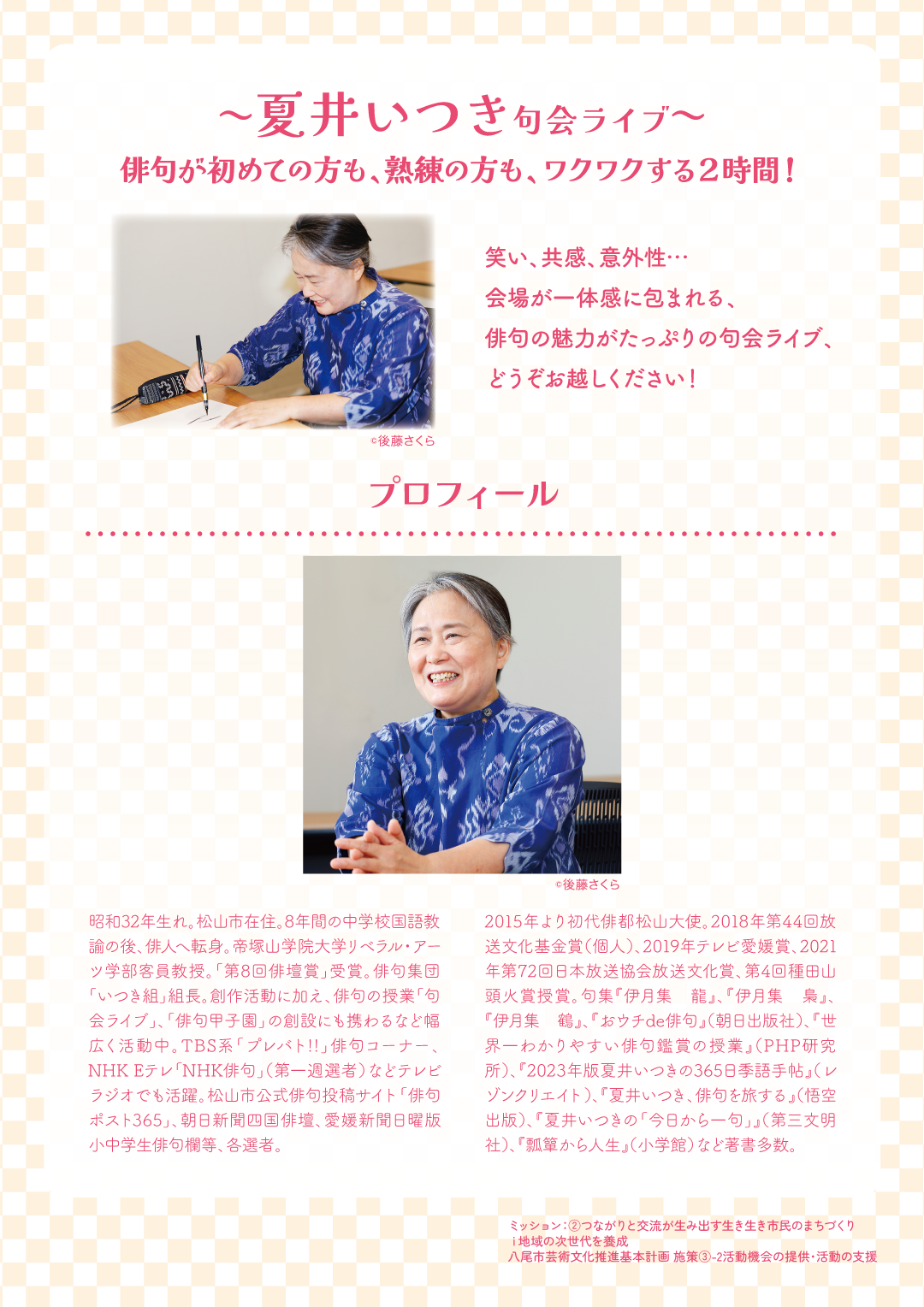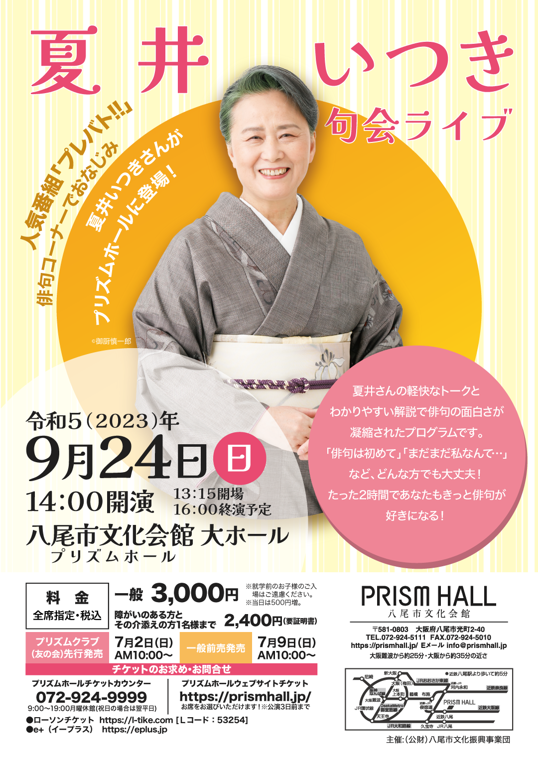そんな先生の大人気句会ライブを八尾プリズムホールでお楽しみください!