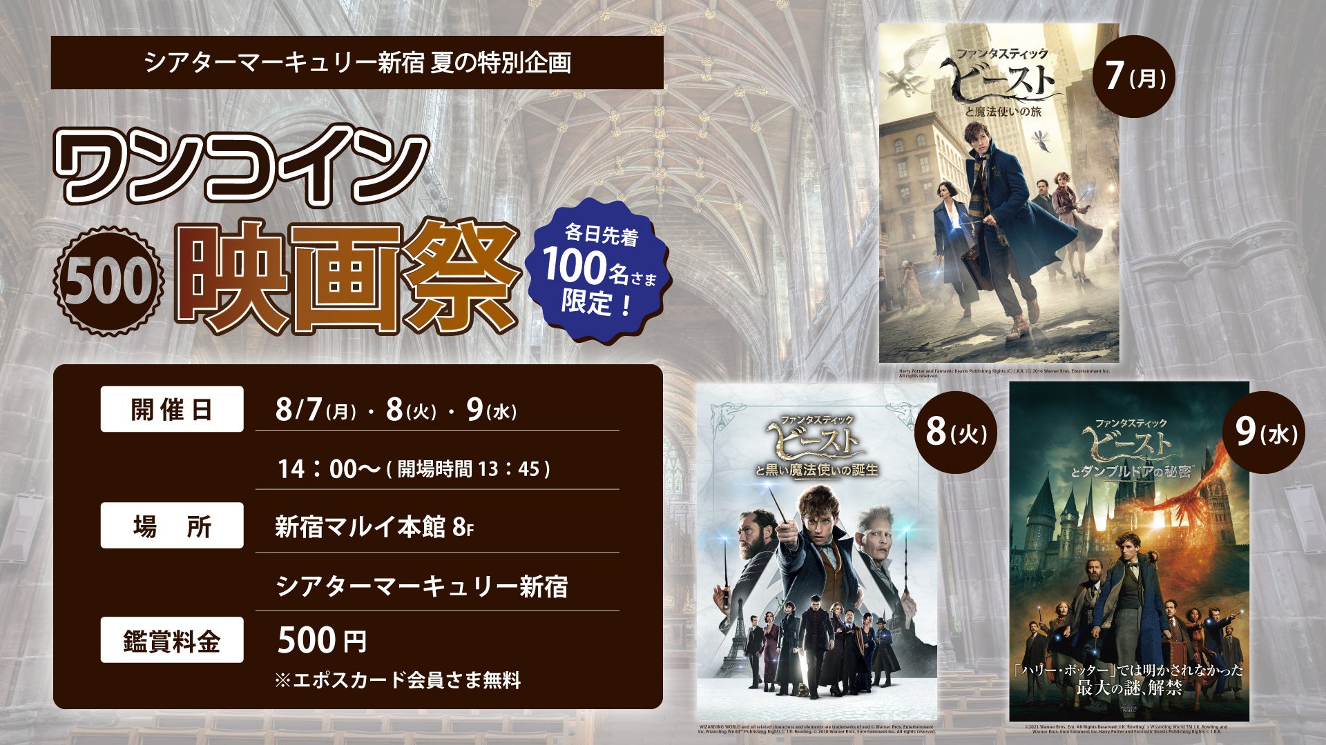 シアターマーキュリー新宿では、学生さまやお子さまの夏休み期間中である2023年8月7日(月)~9日(水)の3日間でワンコイン映画祭を開催し「ファンタスティック・ビースト」シリーズを上映いたします。