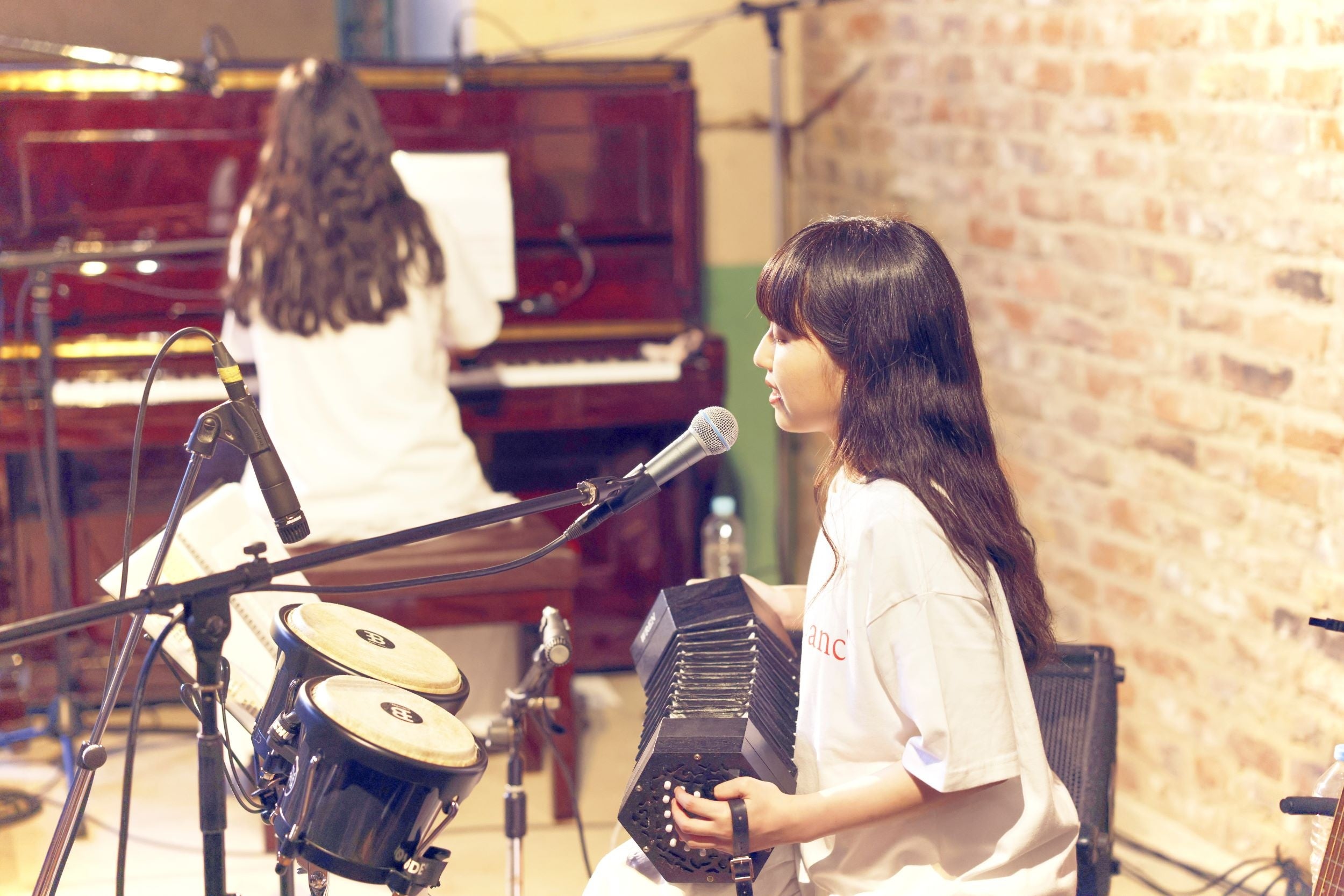 ピアノとギターでのんびりと聴かせた「リズム」、ピアノとボンゴで水滴が弾ける軽やかさを演出した「雨上がり」など、どの楽曲も原曲から大胆にアレンジを凝らしていて、全体的にスローテンポで展開。原曲では温かみのある「Akari」は、Monaによるなだらかなピアノの前奏で始まり、Hinaが鳴らすコンサーティーナの伸びやかな音と合わさって、忙しない街に自分だけが取り残された寂しさに包まれる。無常を歌った歌詞により忠実なアレンジだった。