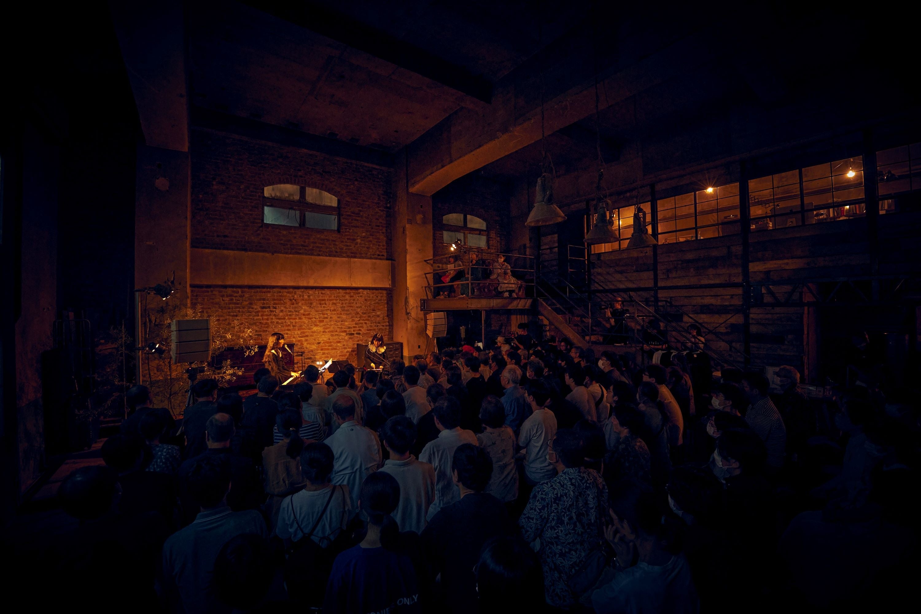 会場は廃工場を再生した工房で、イベントがない日には作業場として使われている。レンガや打ちっぱなしのコンクリートで仕上げた壁や、工場の名残りがある大きな鉄扉、配管が剥き出しの照明――。2019年から開催してきた『キトリの音楽会』でのチャペルやホールなどの会場とは違った無骨な空間に、早くも新たなライヴの幕開けを感じた。