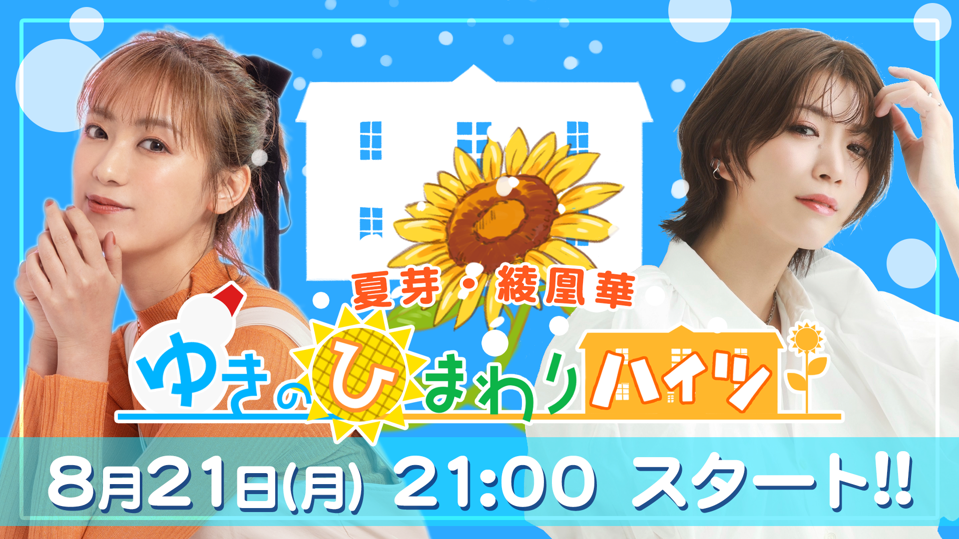 8月21日(月)21:00〜の初回生放送は、MCの夏芽・綾凰華ふたりだけのスペシャルシークレットナイト!どんなトークが飛び出すのか、当日をお楽しみに。