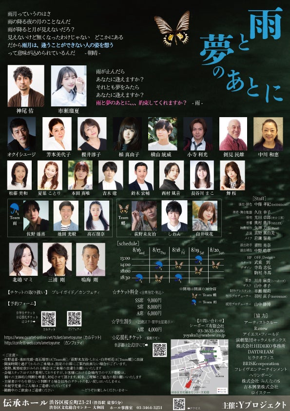 8月19日(土)13:00 (雨) / 18:00 (蝶)