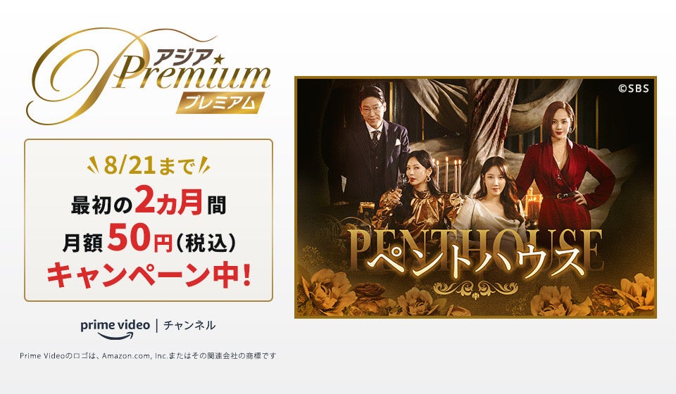 PLAN Kエンタテインメント株式会社(東京都品川区、代表取締役社長 崔相基)は、Amazon Prime Videoチャンネルに開局したアジアコンテンツ専門チャンネル『ドラマ&エンタメ☆アジアPremium』(以下、アジアプレミアム)にて、8月8日(火)~8月21日(月)の期間、新規または再加入でご登録いただいた方を対象に、最初の2ヵ月間・月額50円(税込)でお試しいただけるお得なキャンペーンを実施いたします。
