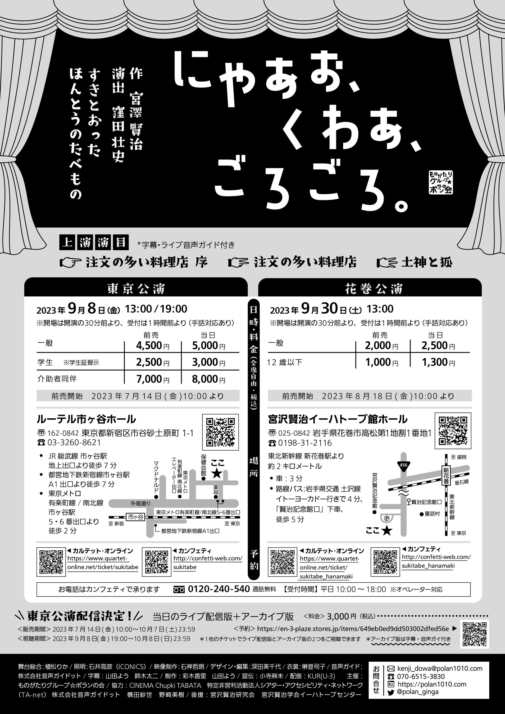 【花巻公演】2023年9月30日(土)/会場:宮沢賢治イーハトーブ館ホール(岩手県花巻市高松1-1-1)