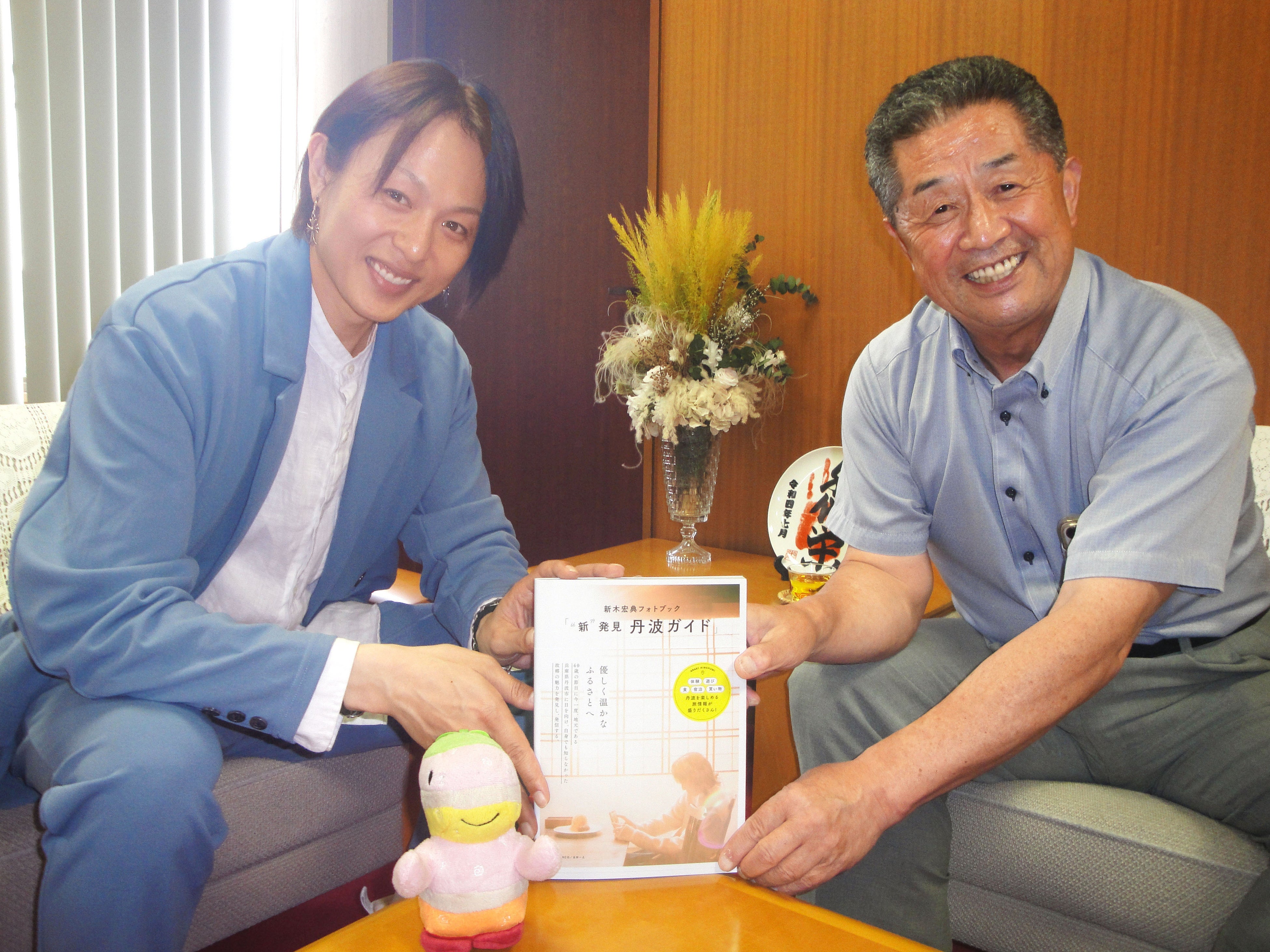 俳優・新木宏典が、出身地の兵庫県丹波市で撮影したフォトブック「〝新〟発見 丹波ガイド」(東京ニュース通信社刊)のリリースにちなんで、8月7日に丹波市の林時彦市長を表敬訪問。発売されたばかりのフォトブックを手に、愛する故郷・丹波への凱旋、そして林市長との記念すべき会談が実現した。
