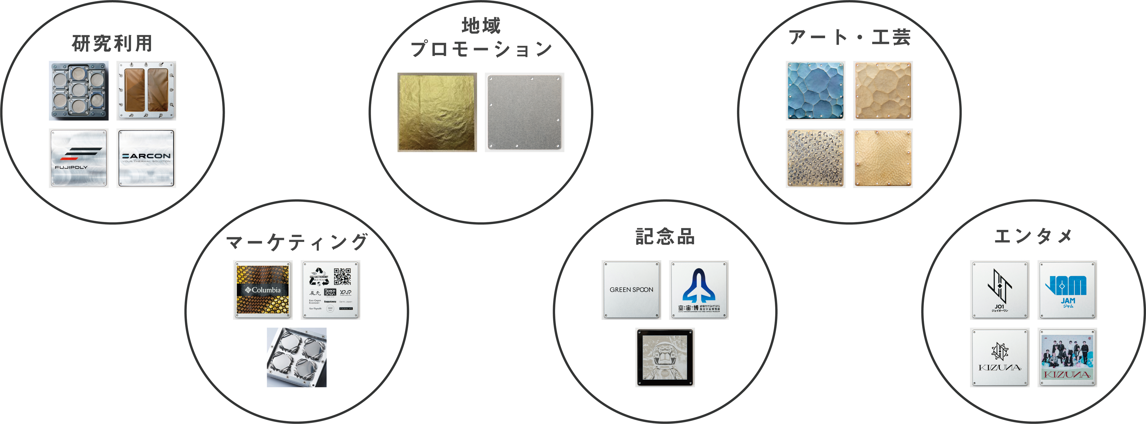 国内外の研究機関・教育機関・民間企業13組の対象品(研究開発素材、企業ロゴ、プロモーションアイテムなど)を打ち上げました。