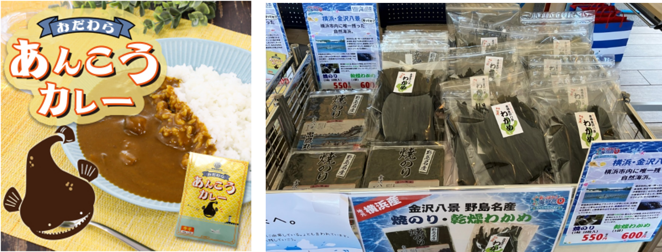 トークショーでも話題となった、横浜野島で獲れたのりとわかめと、小田原のあんこうカレーを会場で販売。小田原でアンコウが獲れることへの驚きや、鍋の需要が無くなる春夏のアンコウをどう活用するかといった話に花が咲きました。また会場の直ぐ近くの海が、のりやわかめが獲れる豊かな海だということに関心を抱く姿も多くみられました。