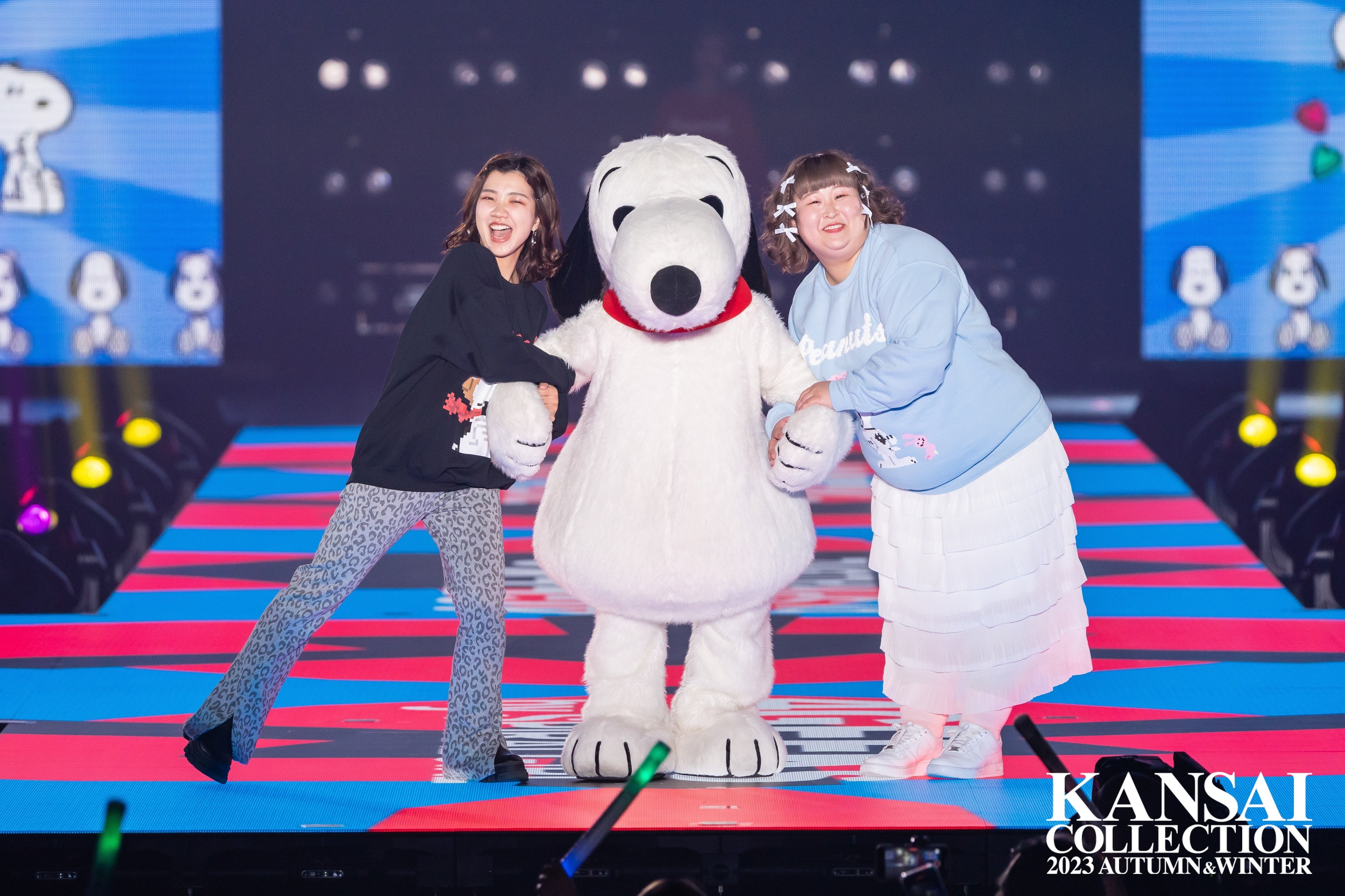 続くファッションステージでは、井手上漠やちゃんみななどが登場。さらにあの世界的キャラクタースヌーピーが場を盛り上げる中、3時のヒロインや渡辺美優紀もペアで登場し、軽快な音楽と共に会場を盛り上げました。