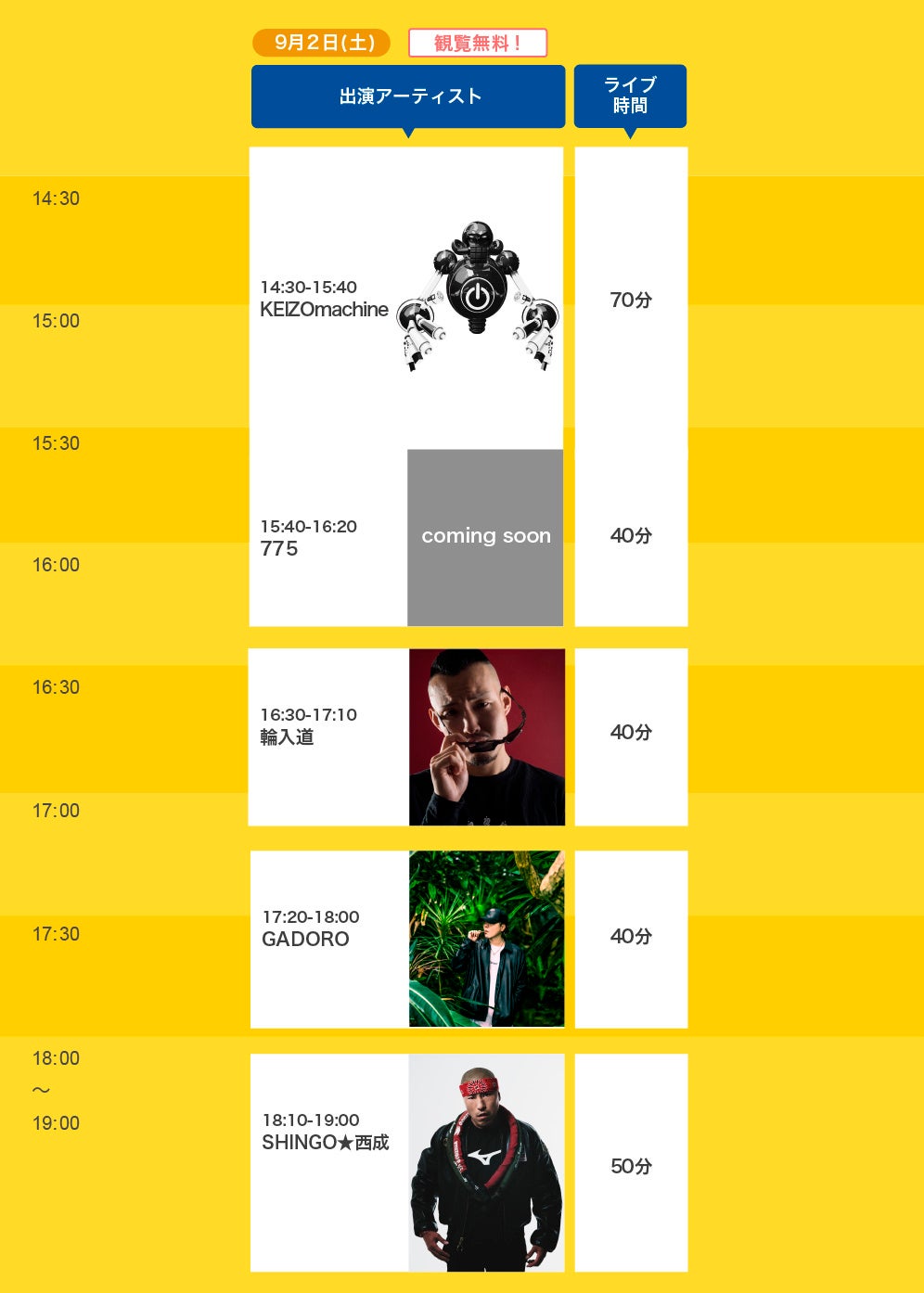 後半の15時からはMicro(Def Tech)、MINMI、TEE 他豪華アーティストが出演!