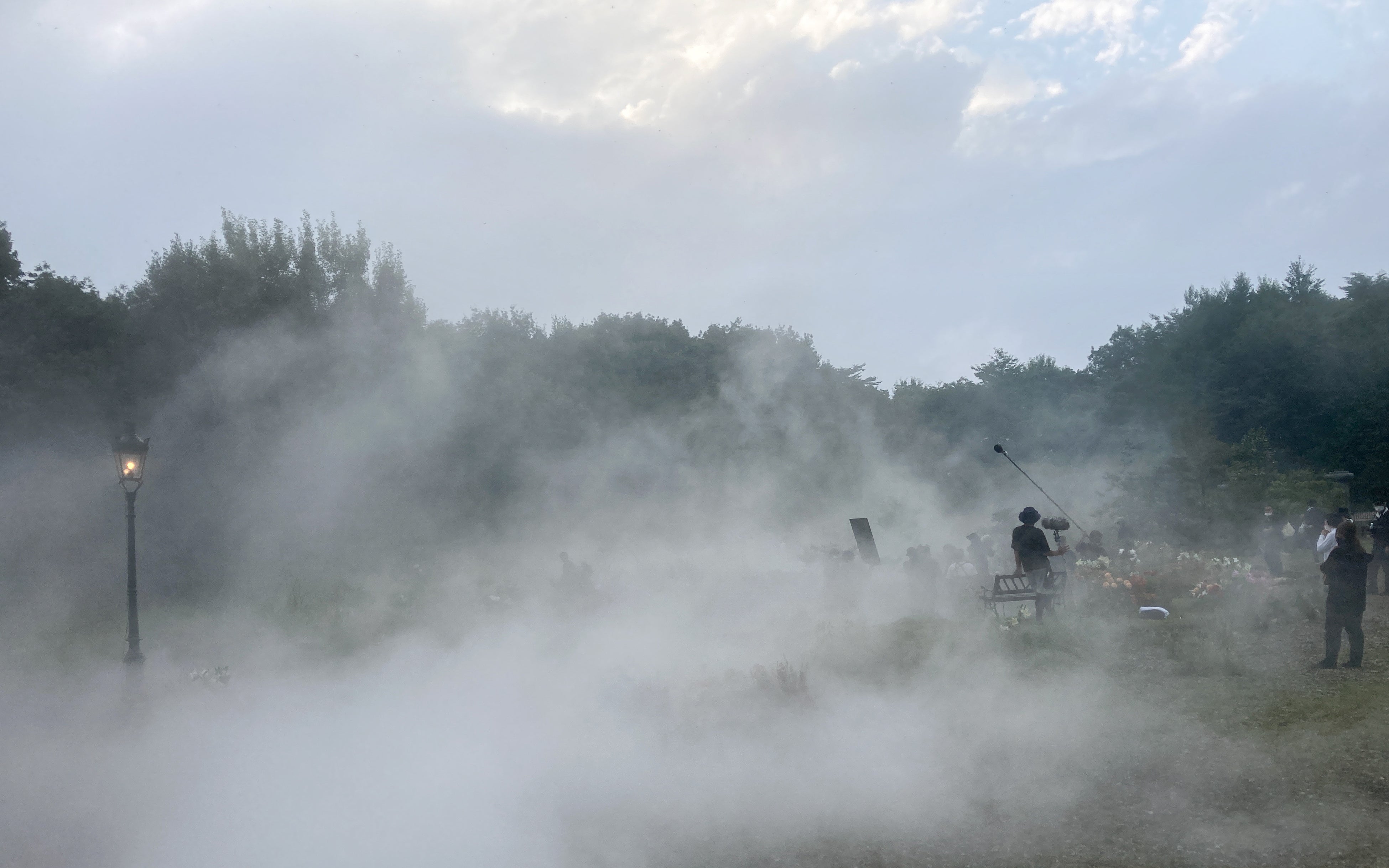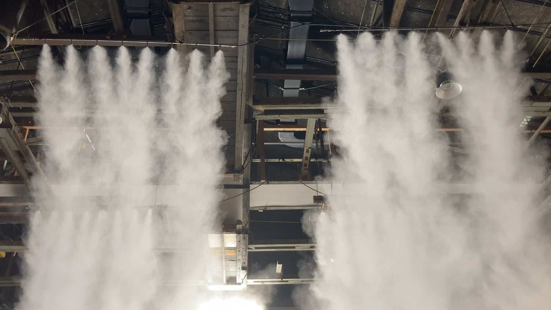 撮影の舞台となった屋外空間や屋内空間において、自然な形の霧を発生させました。地上部や天井部から霧を発生させ、また手持ちの噴霧装置で霧を空間に充満させることで映画コンセプトに合致した舞台効果を実現しています。