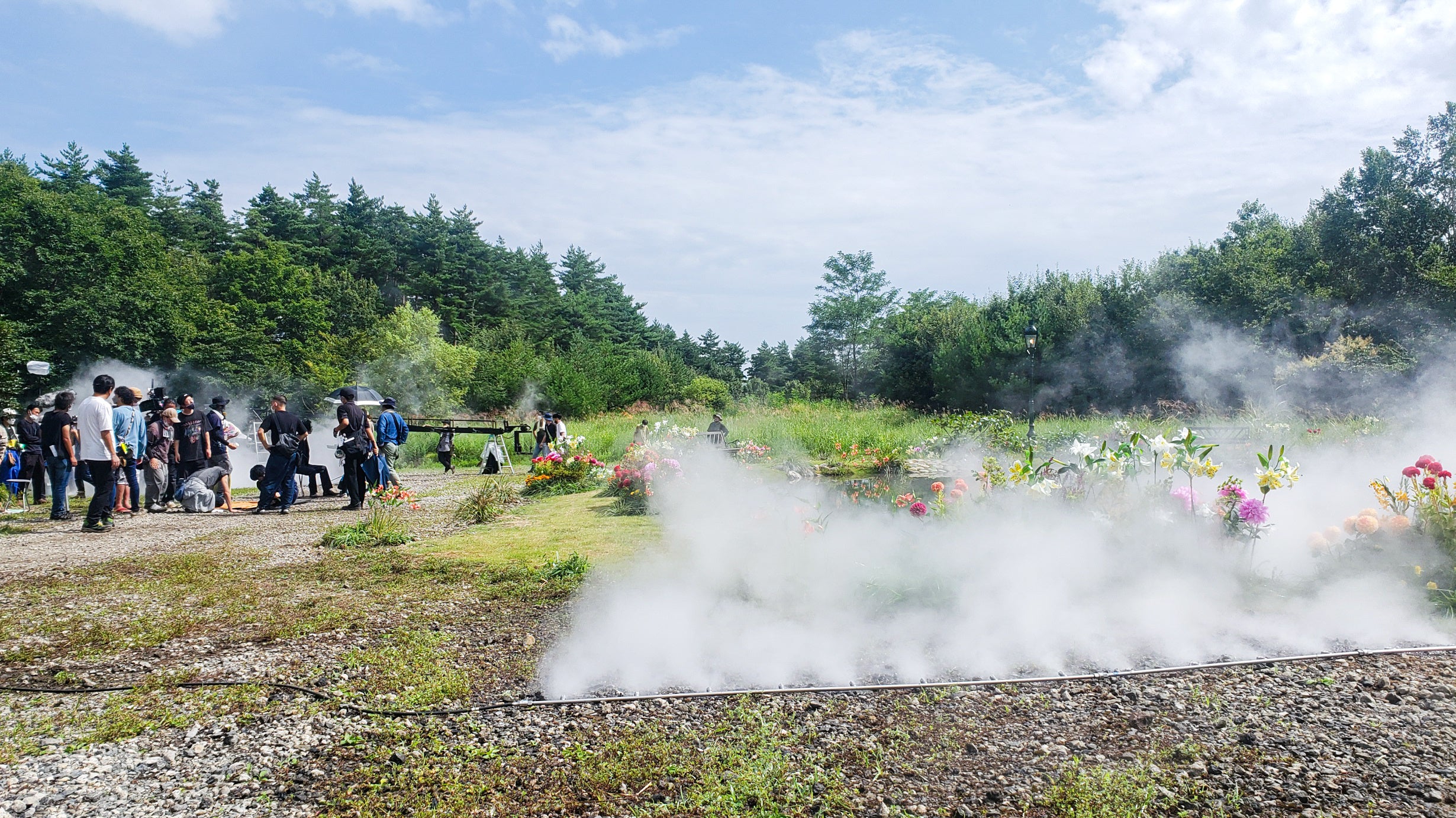 ヒートアイランド対策などとして街中でのミスト噴霧用途、また東日本大震災後の電力逼迫を改善するために、全国の発電所でガスタービン吸気冷却用途(夏期に落ち込む発電能力の回復用途)として開発された技術を、今回映像撮影の用途に最適化しています。