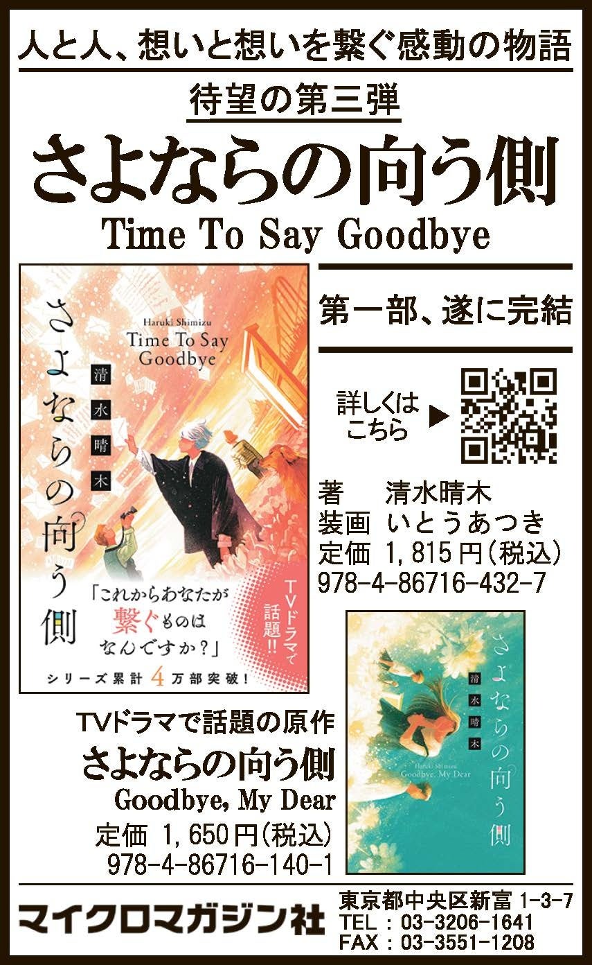 マイクロマガジン社(東京都中央区)は、『さよならの向う側 Time To Say Goodbye』を8月11日の朝日新聞に掲載いたしました。