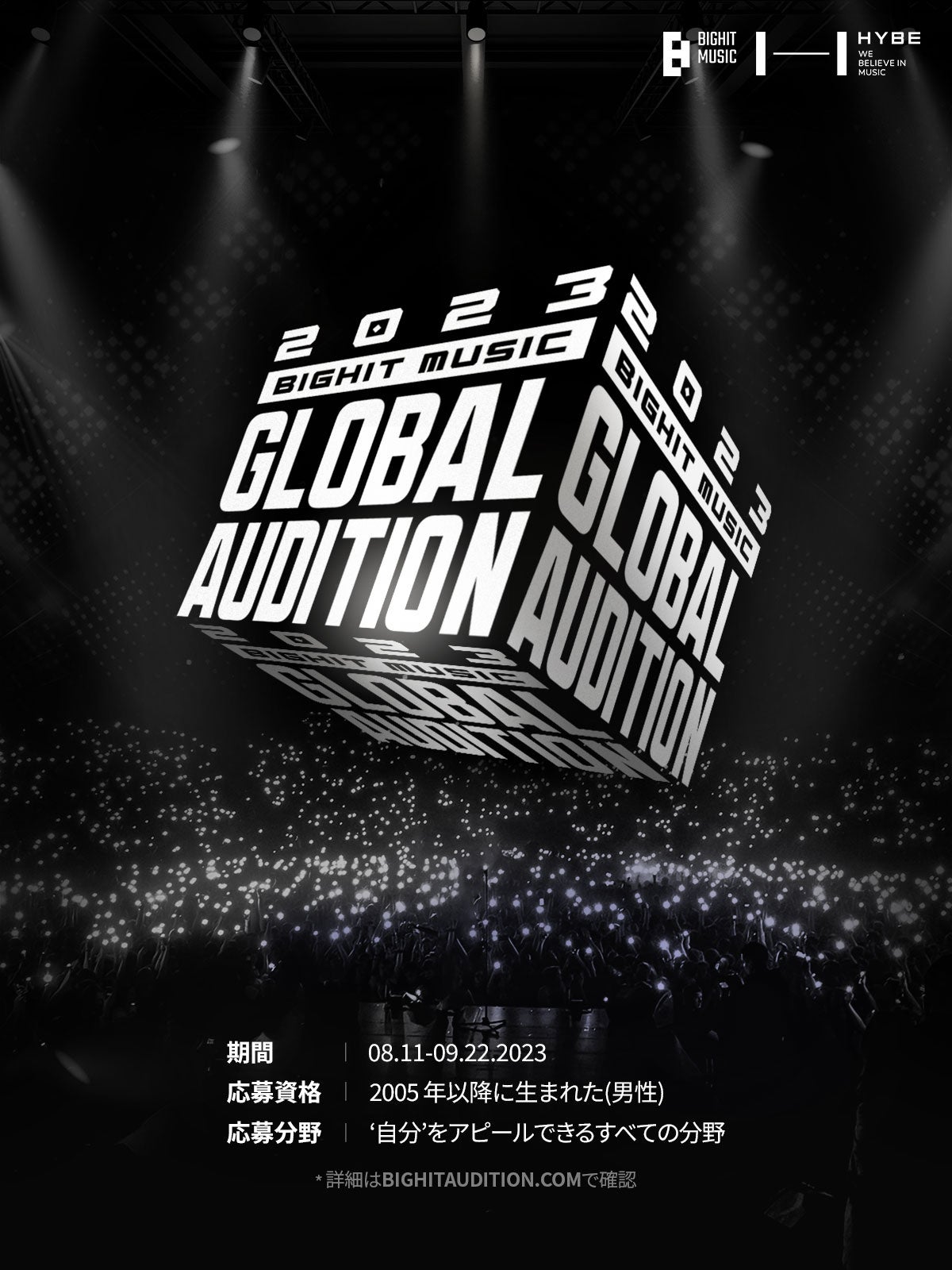 BTSやTOMORROW X TOGETHERが所属するレーベル BIGHIT MUSICが、新しいボーイグループのメンバーを発掘する「2023 BIGHIT MUSIC GLOBAL AUDITION」の開催を発表しました。今回のオーディションは、本日8月11日から9月22日までオンラインで行われ、2005年以降に生まれた男性を対象としています。