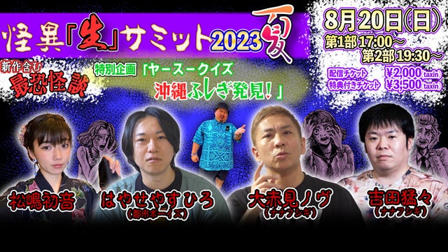 当日の生配信は、オープニングトークとして本編が始まるまでの約20分はYouTube『怪異サミット』で無料公開もされるのでこちらもお楽しみ頂きたい。