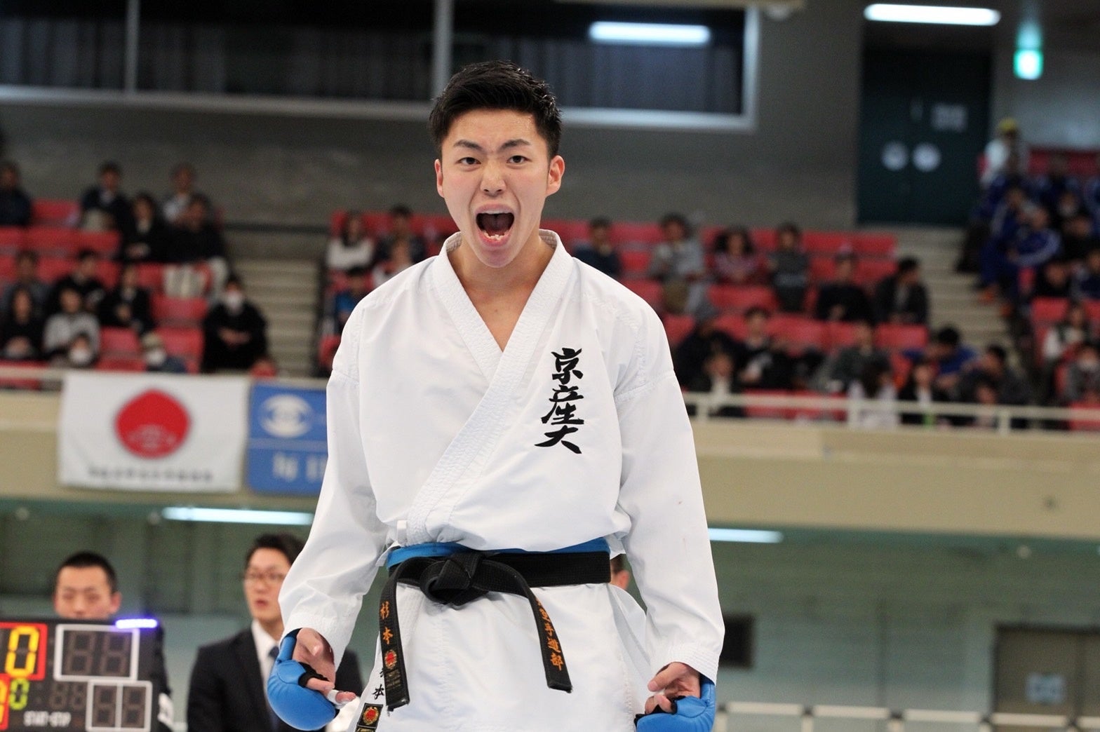 杉本一樹氏は、中学卒業後、親元を離れ、岡山県のおかやま山陽高校に進学し、空手道部に所属し主将を務めました。卒業後、京都府にある空手の名門、京都産業大学に進学。入学してからの 3 年間で、5 度の手術を経験しましたが、その間ほとんど試合に出場することができませんでした。しかし、4 年目となる最後の年になって主将を務め、初出場の全日本学生選手権個人組手 準優勝、団体組手では優勝(二連覇)をしました。アジア大会での優勝経験もあり、卒業後は国際大会にも出場し、2020 年に現役引退。