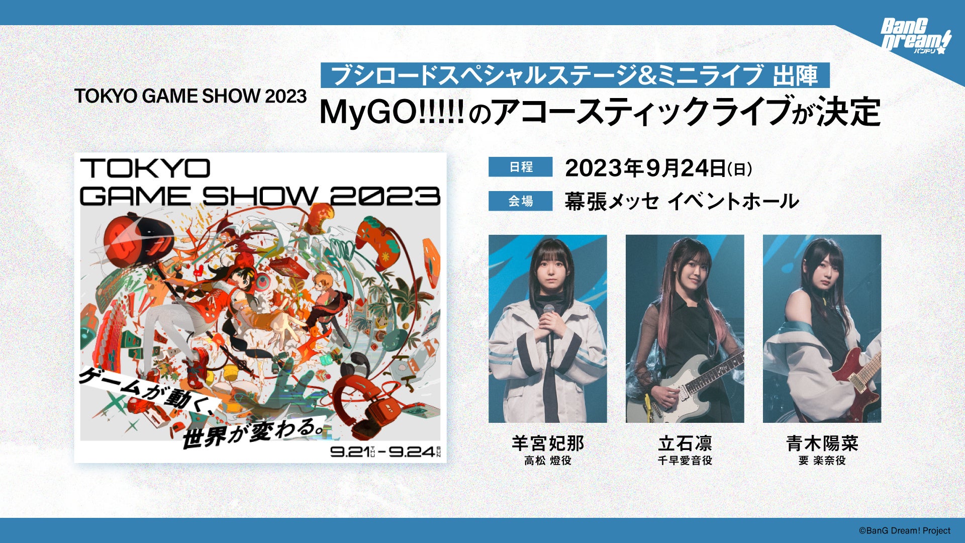 「TOKYO GAME SHOW 2023」MyGO!!!!!のアコースティックライブが決定!