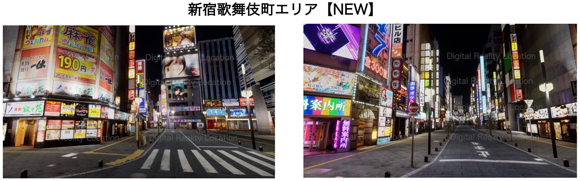 渋谷スクランブル交差点エリアと銀座四丁目交差点エリア、そして今回新たに追加した新宿歌舞伎町エリアとサイバー渋谷エリアの提供により、時間帯やアングル、時代設定も自由自在の作品作りが可能です。