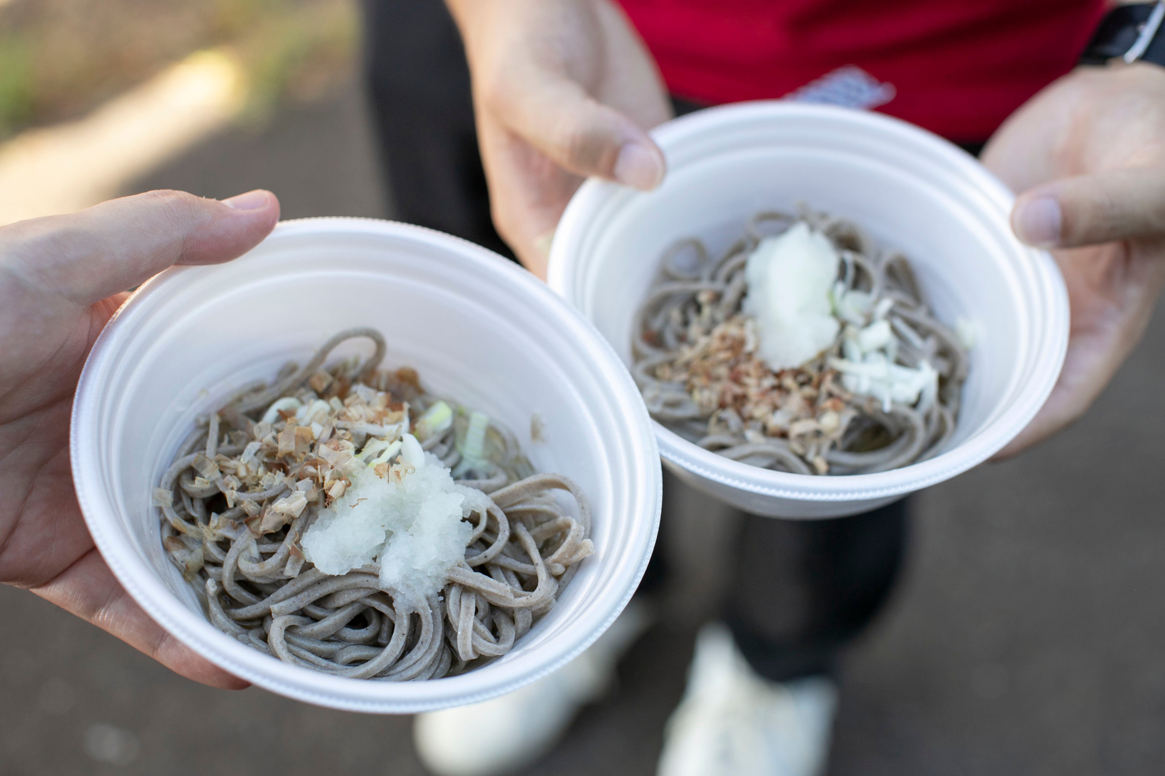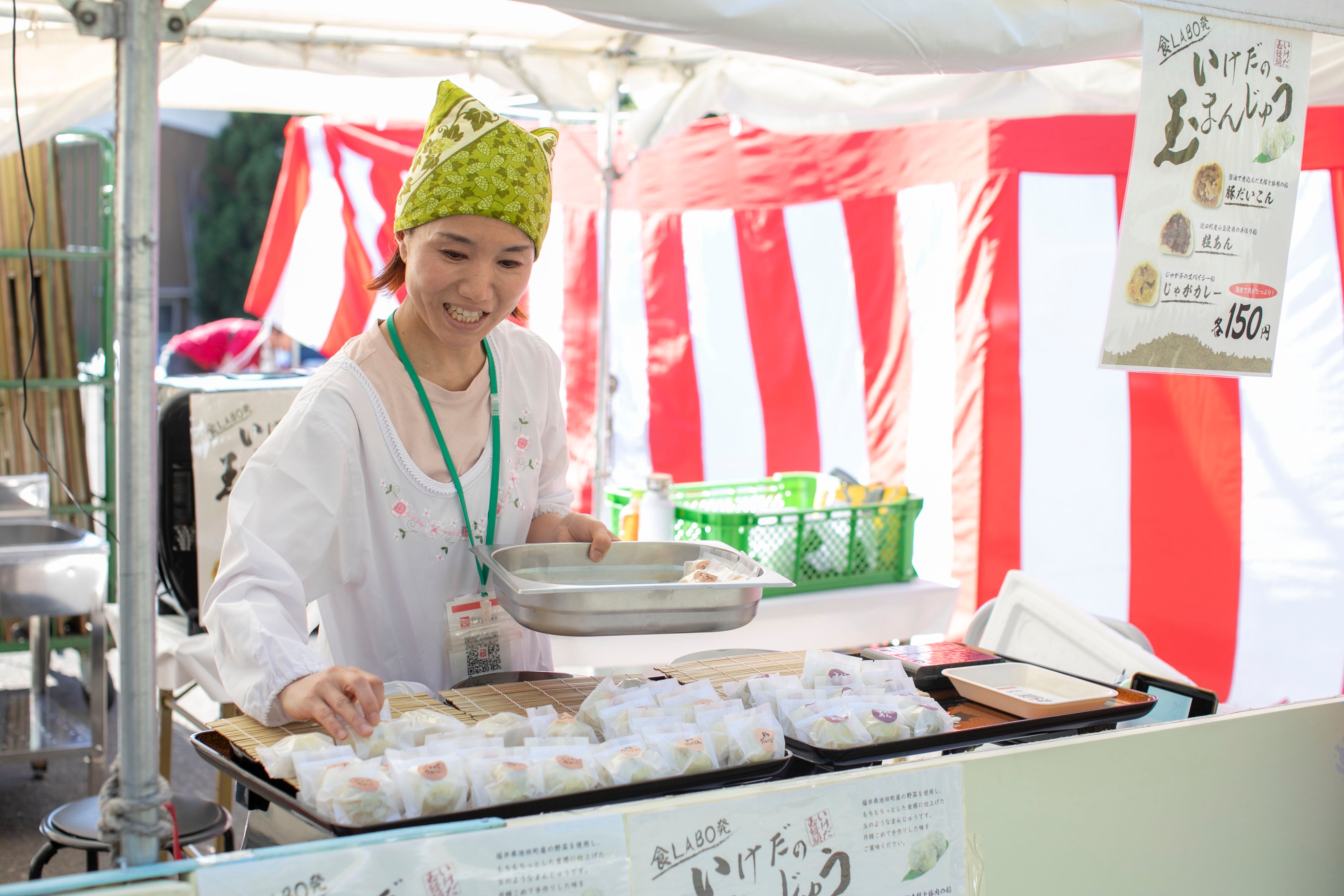 会場には池田町ならではの出店が来場者を迎えました。池田町の食品加工研究支援施設「食ラボ」からは地元野菜をたっぷり使った「いけだ玉まんじゅう」を初お披露目。そば打ち名人による十割そばや、手作りの赤飯、ます寿司、米粉のお菓子など、来場者を食でおもてなししました。