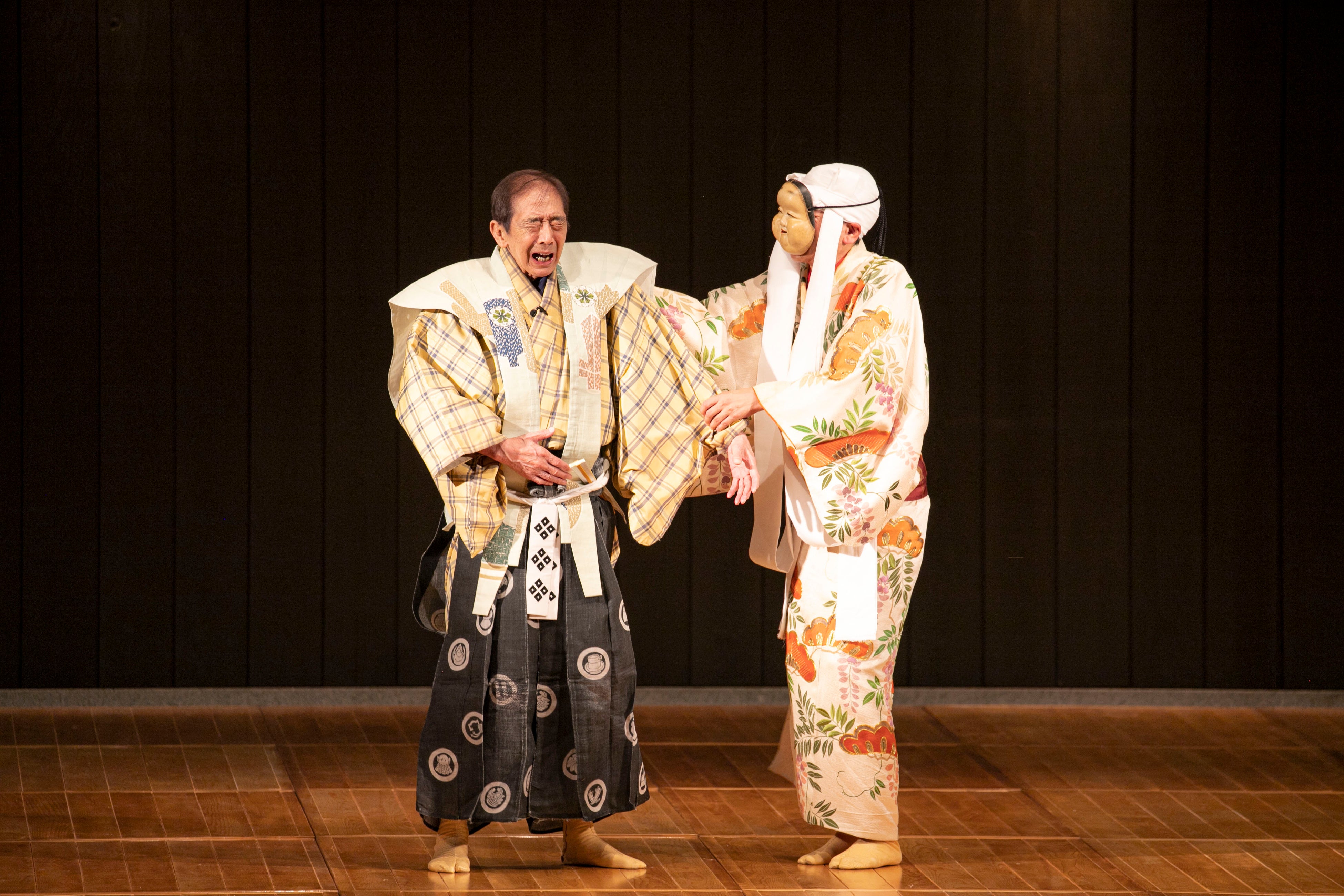 伝統を大切にしながら親しみやすい狂言を目指す茂山千五郎家による「二九十八」。舞台は室町時代。妻を持たぬ男が良き伴侶を授かろうと清水寺へ参詣したところ、夢で「西門に立った女を妻にせよ」とのお告げを授かります。今年人間国宝に認定された茂山七五三さんが妻乞いする「男」を好演しました。