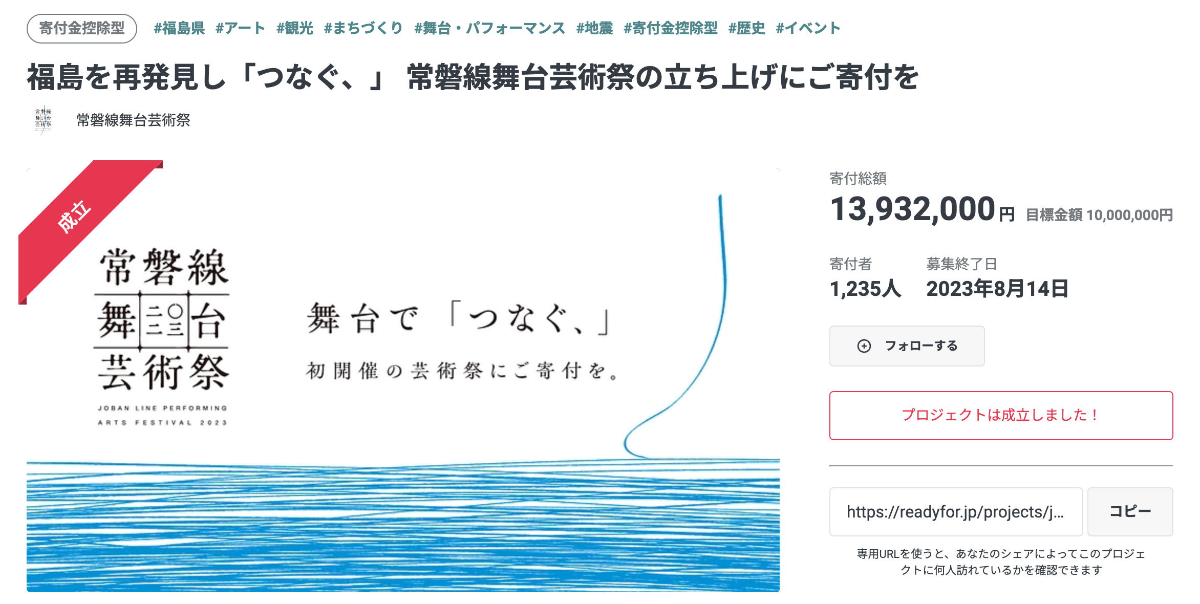 ・プロジェクトタイトル:福島を再発見し「つなぐ、」 常磐線舞台芸術祭の立ち上げにご寄付を
