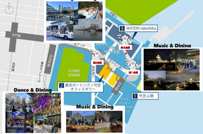 これまで同様、第一会場は、竹芝ふ頭を活用し、東京湾の夜景を楽しみながら音楽と食事を楽しめる「Music&Dining」、第二会場は、東京ポートシティ竹芝で盆踊りや屋台、音楽ステージを楽しめる「Music&Dining・Dance&Dining」を実施いたします。そして今回は、ウォーターズ竹芝を第三会場として追加し、「夏ふぇすナイトクルーズ」や「京浜東北ビールフェス」で竹芝の水辺を楽しむ「Cruising&Dining」を実施いたします。