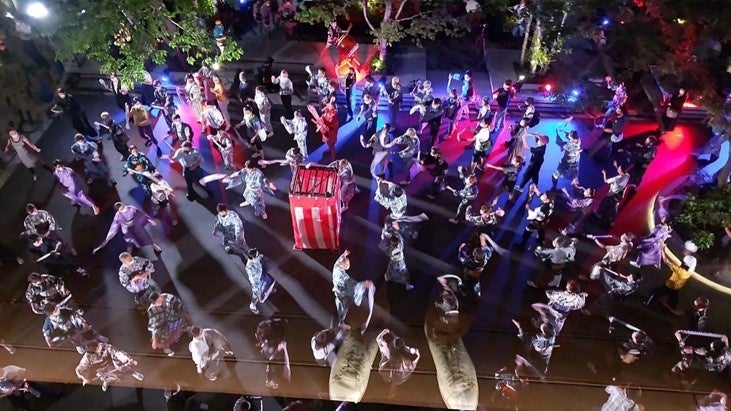 9月1日(金)18時~21時、2日(土)17時~20時、東京ポートシティ竹芝1階ポートプラザでは、屋台や盆踊りなどの「竹芝縁日」を開催します。お馴染みの盆踊り曲から民謡、歌謡曲、ポップス、洋楽、アニソンなど、バラエティに富んだ選曲で、老若男女が楽しめるイベントです。選曲の目玉は、昨年制作した竹芝地区オリジナルの盆踊り曲「竹芝絵巻~時空を超えて」。
