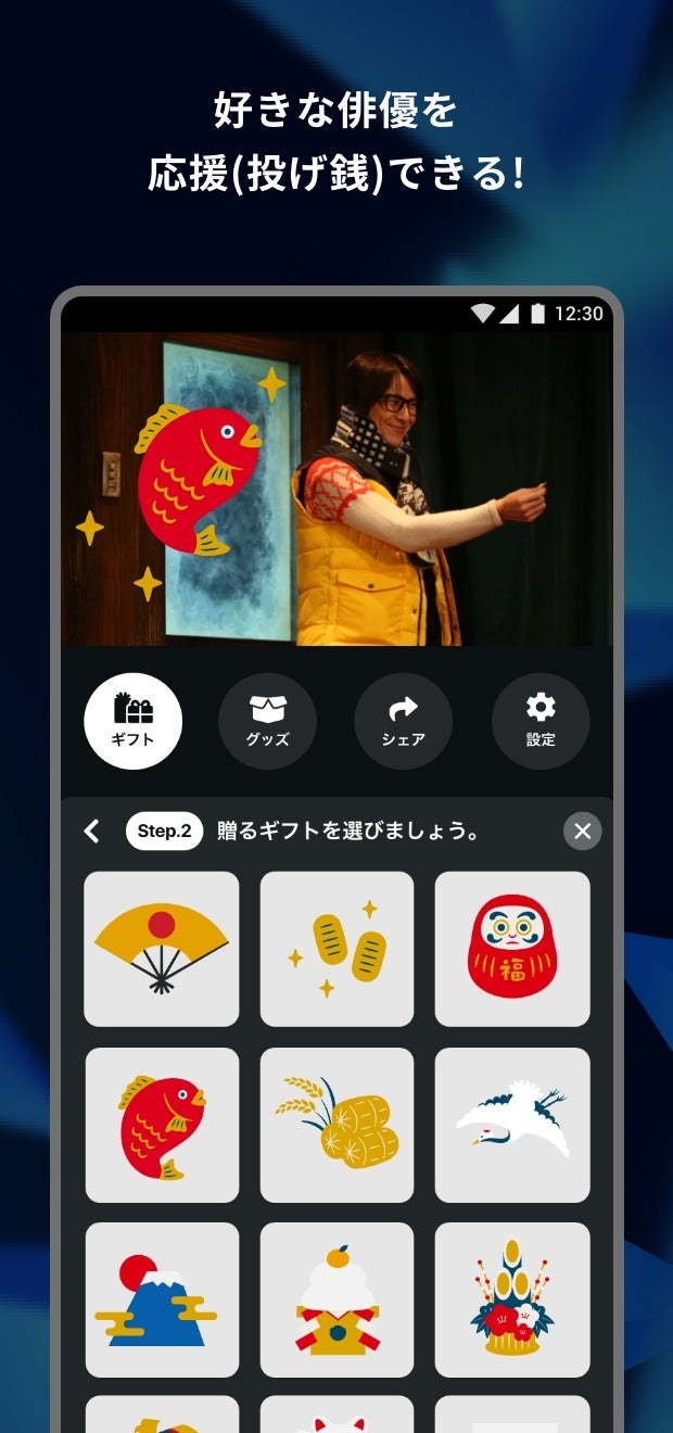 演目に対してではなく、演じる俳優に、観ているその場でギフトを贈ることができます。