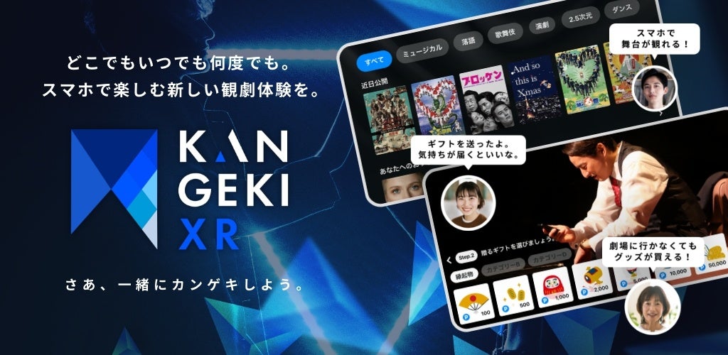 「KANGEKI XR」では劇場に足を運ぶことなく、いつでもどこでも、スマホから「観劇」を楽しむことができます。