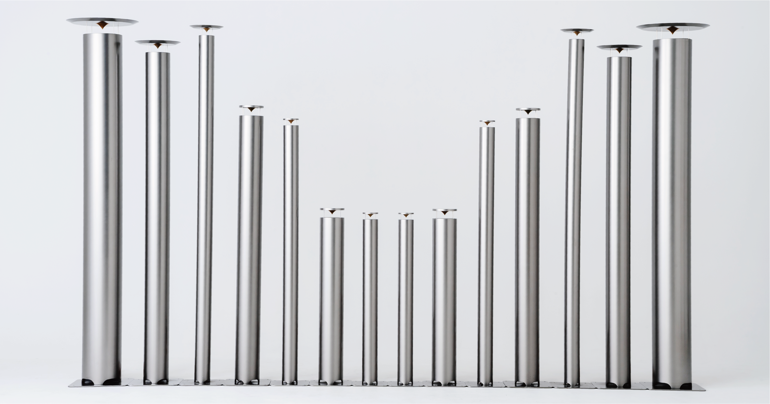 音質を求めた結果たどり着いた、柱状のフォルムが特徴。1つのスピーカーユニットで広い音域を出力し、頂点の反射板を使って周囲へと音を拡げていきます。音の調整を行わない、音源そのままを再生するスピーカーです。