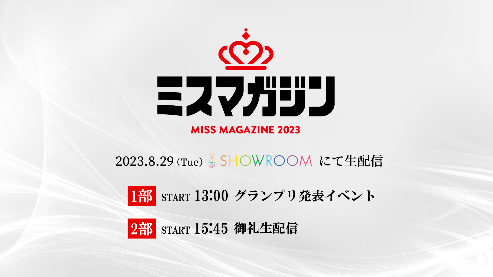 「ミスマガジン2023 グランプリ発表イベント」を開催 今年は「SHOWROOMプレミアムライブ」にて2023年8月29日(火)13時より生配信が決定