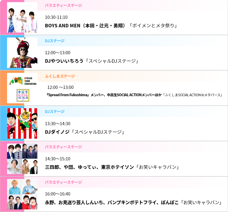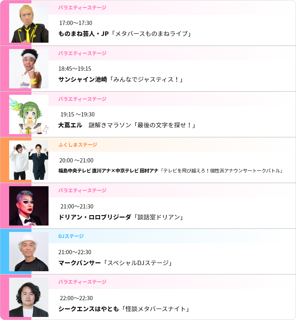中京テレビ「24時間テレビ」メタバース会場 ステージイベントタイムスケジュール