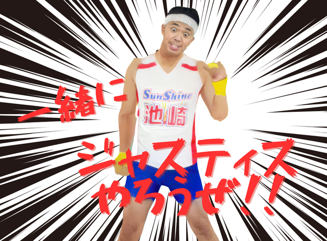 8/25(金)18時45分〜には、サンシャイン池崎本人と一緒に一斉にジャスティスを発動させるという企画、「みんなでジャスティス」を開催します。