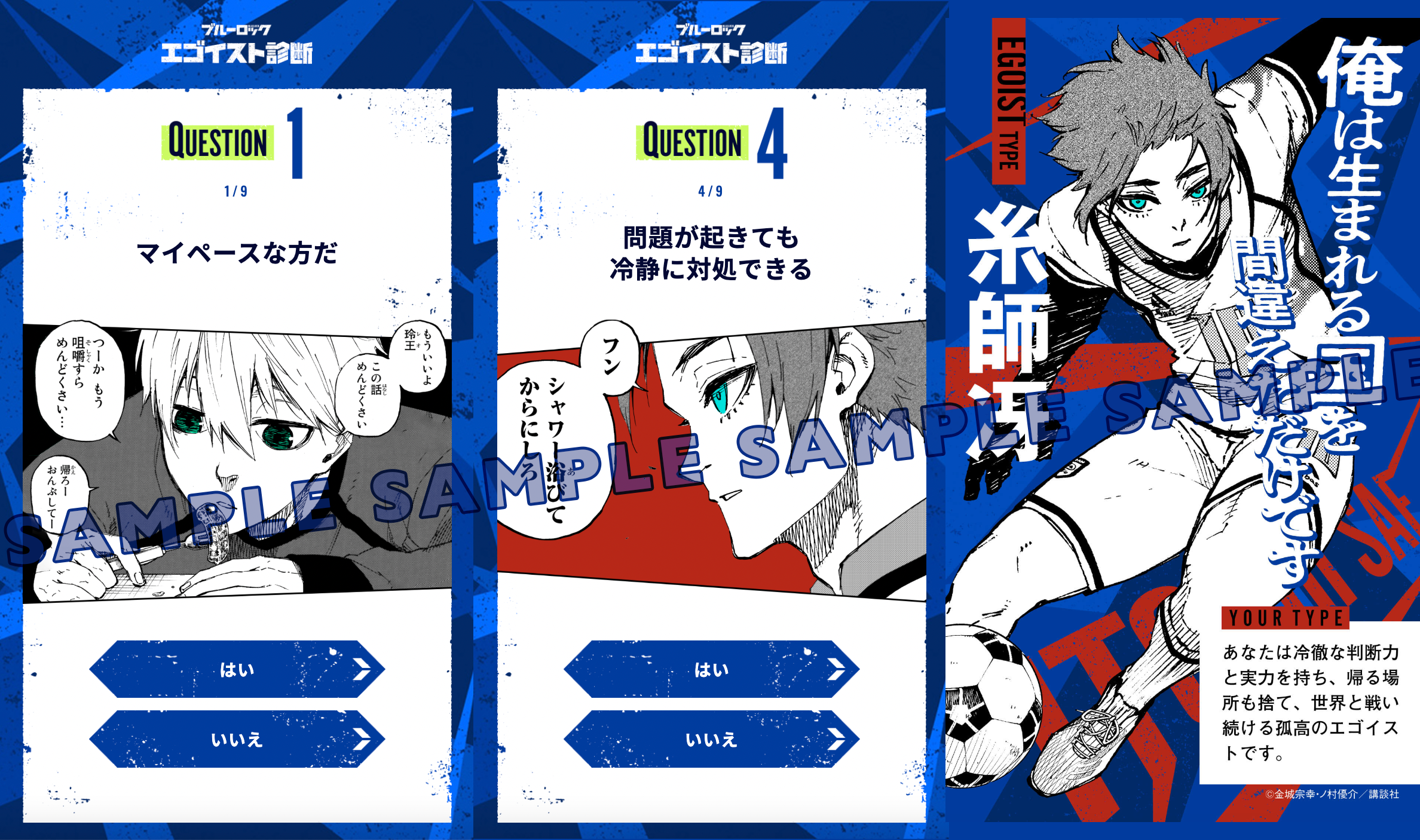 2018年、W杯。日本代表は無残に散った。今大会もベスト16止まり…。アジアでは強豪? 組織力は世界レベル? そんなことは、もう聞き飽きた! 課題は、絶対的な「エースストライカー」の不在。悲願“W杯優勝”のために、ゴールに飢え、勝利に渇き、試合を一変させる革新的な“1人”を作るべく、日本フットボール連合は300人のユース年代の選手達を招集する。まだ無名の高校2年生・潔世一は、己のエゴを以って299人を蹴落とし、最強のエースストライカーの道を駆け上れるか!? 登場人物、全員“俺様”! 史上最もイカれたエゴイストFWサッカー漫画、ここに開幕!!