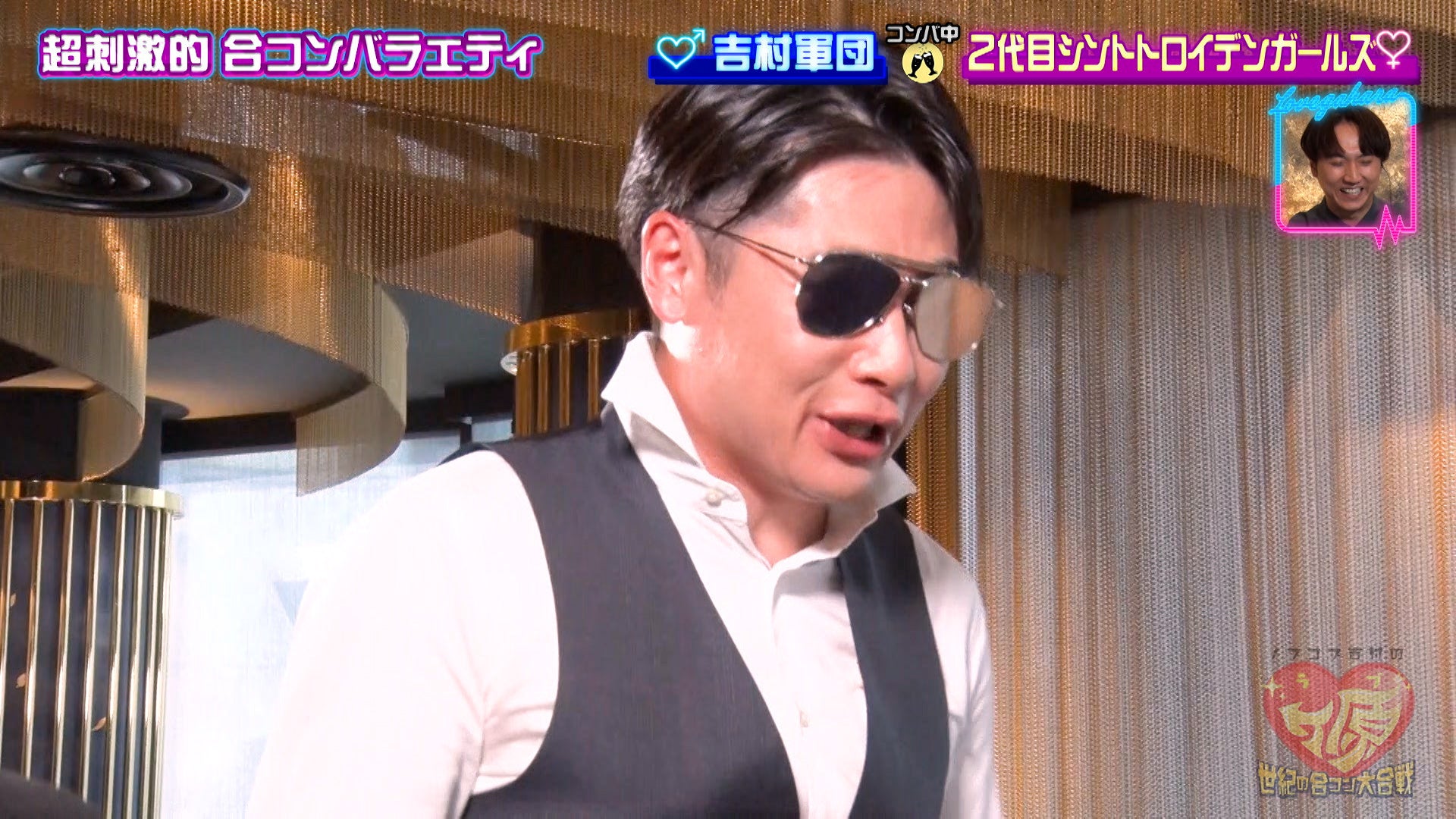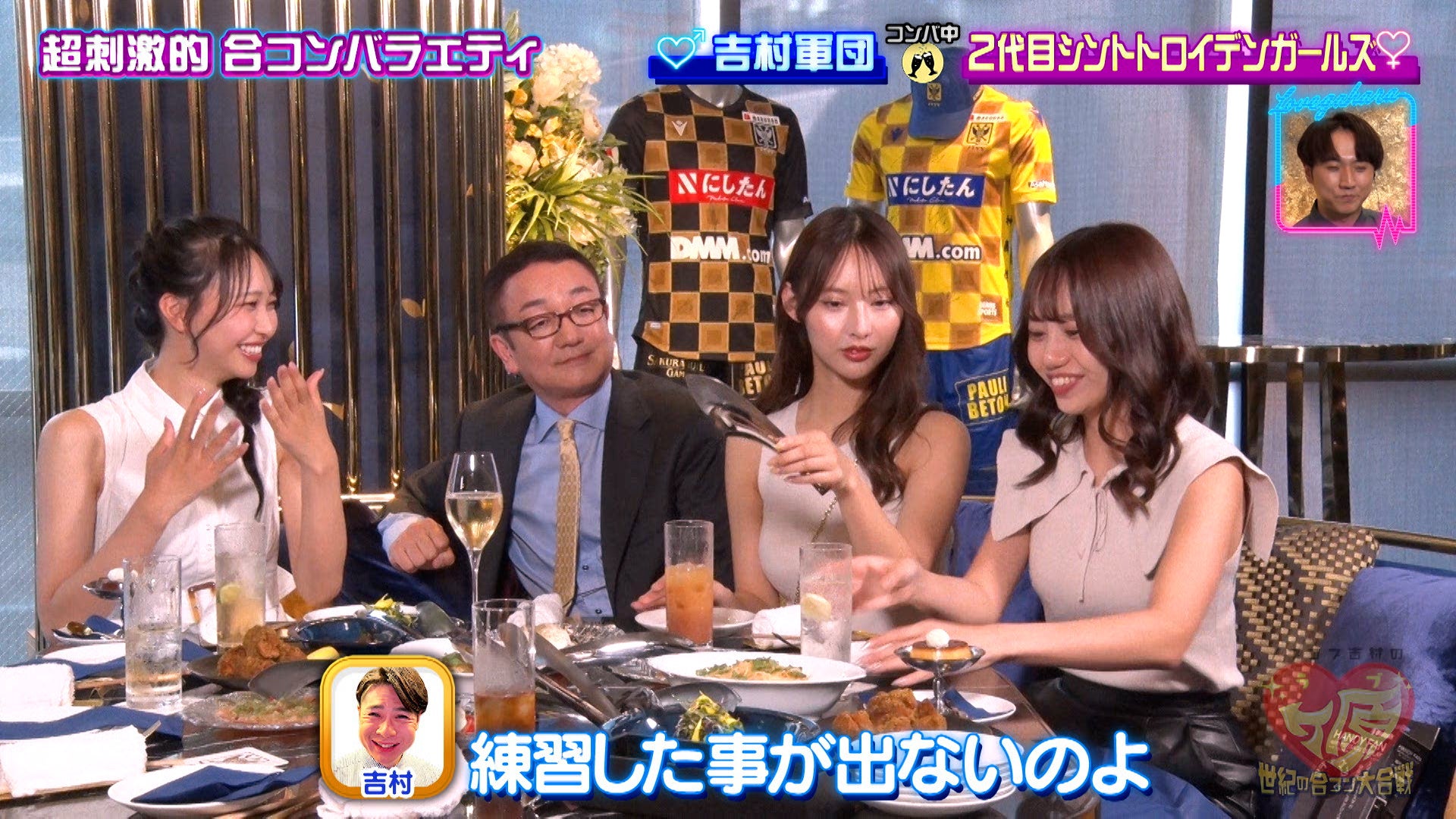 続いては、吉村軍団とチーム 2代目シントトロイデンガールズの合コンです。吉村は、後輩芸人のYUTARO(カントリーテール)と、番組スポンサーである「にしたんクリニック」西村社長の指名で出演が決まった一般人・加藤正樹さんとのチームで挑みます!