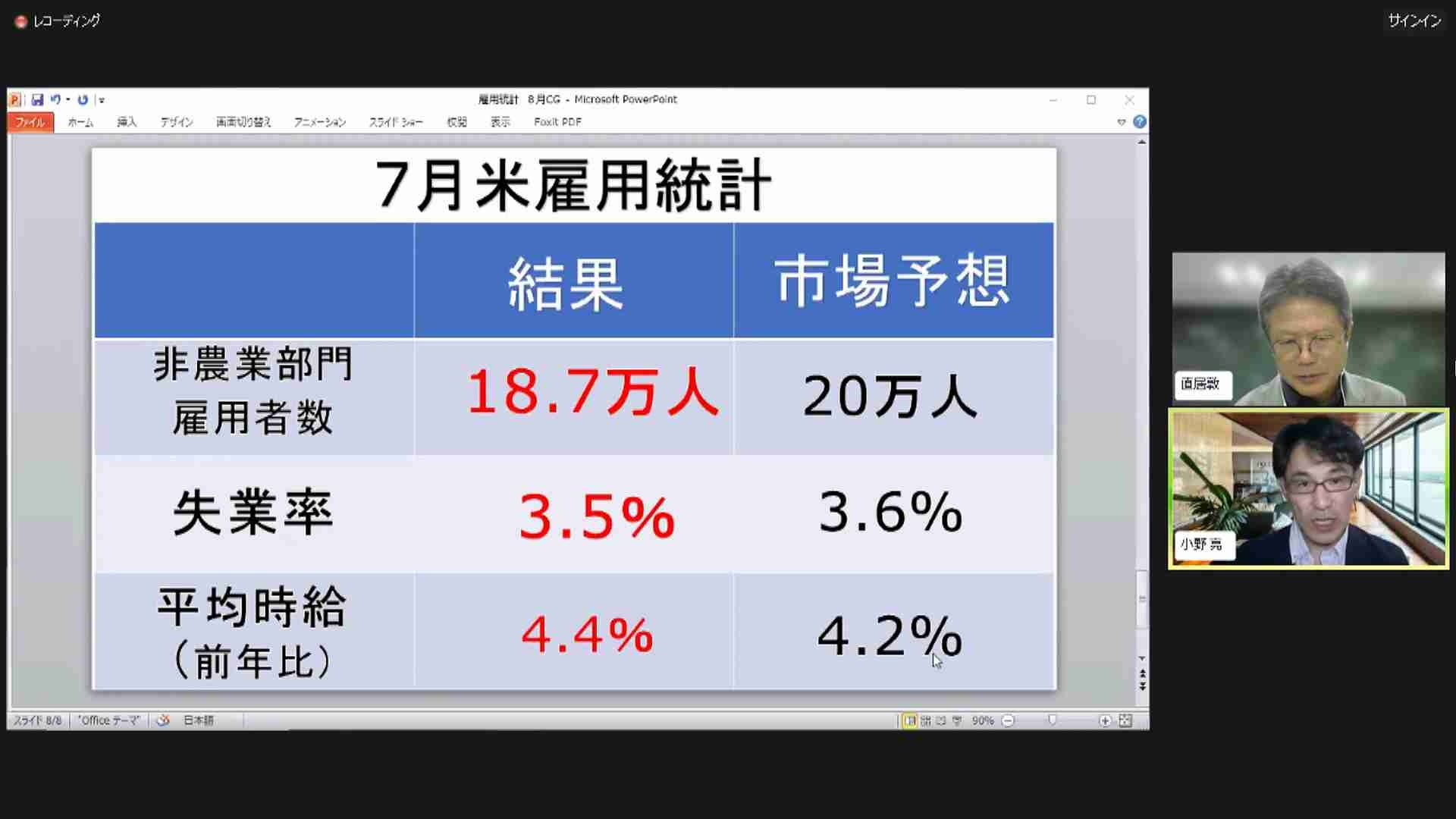 21:20からプレトークを開始。米CNBCが21:30から速報する「8月の米雇用統計発表」(英語放送)を視聴者の皆様と一緒に21:45頃まで視聴しながら、注目ポイントをリアルタイムで解説します。