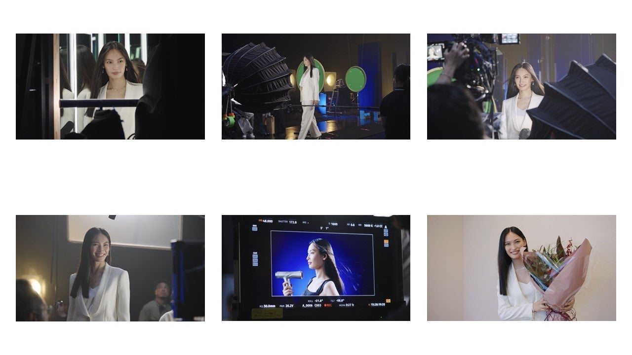 髪に悩む女性たちの顔を映す鏡の世界を表現したシーンでは、大量の鏡を使用したため、どの角度から見ても美しく髪が映えるように身体の向きなどを監督と細かく確認。颯爽と歩く大政さんをシネマライクなドリーショットで捉えるシーンでは、存在感抜群のウォーキングでトップモデルとしての一面も披露してくださいました。さらに、女性たちの悩みに応えて「いいえ」と言い放つシーンでは、ベストなショットを探ってテイクが重ねられましたが、大政さんは絶えることのない笑顔で現場を和やかにリードしてくださいました。本番やリハーサル以外の休憩時でも、監督やヘアメイクアーティストなどスタッフ陣と積極的にコミュニケーションを取る姿も見られました。