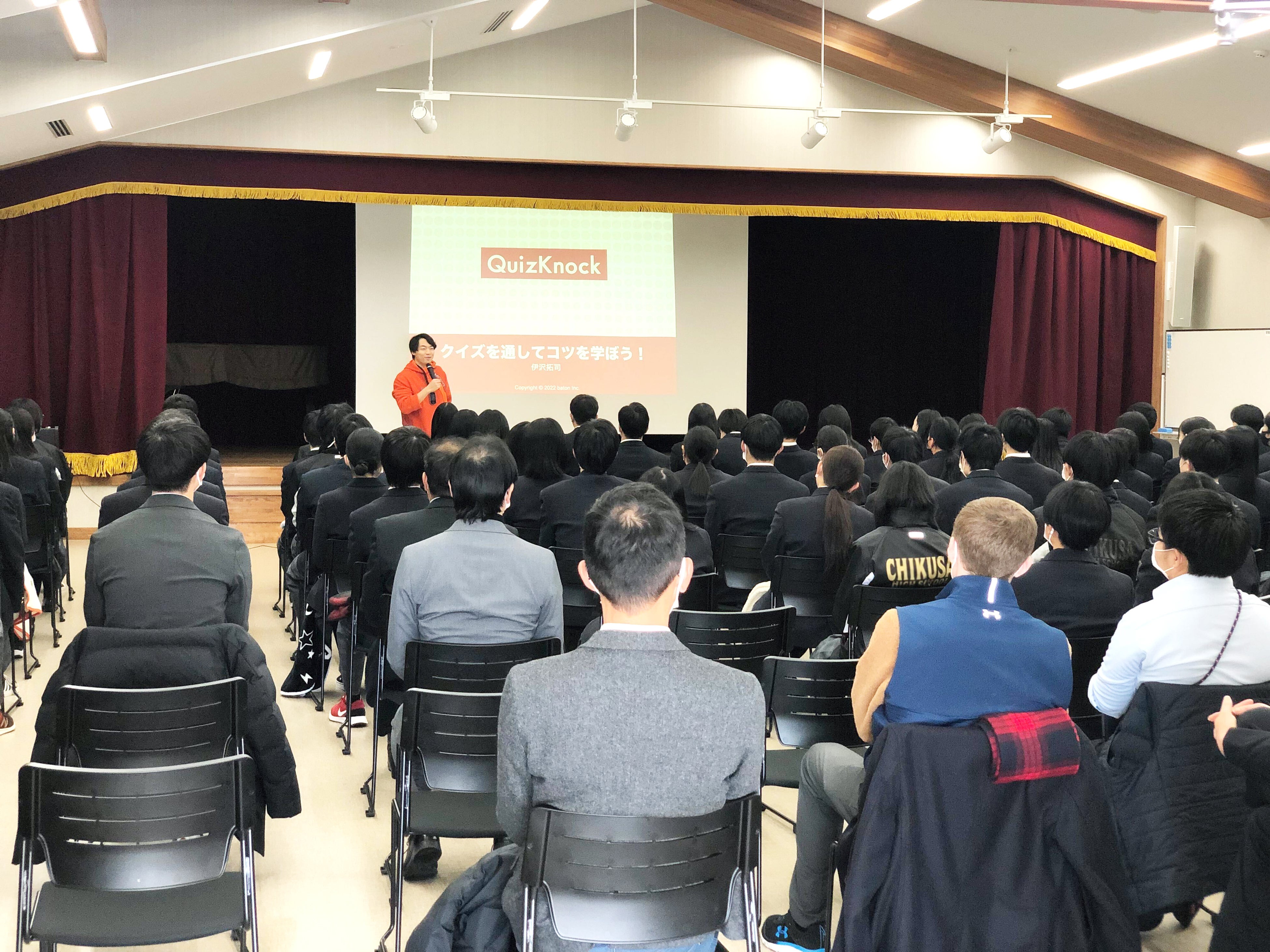 知ることや学ぶことの楽しさ、進学・進路に関する情報などを多くの人に伝えていくことを目的に、QuizKnockが2019年4月から取り組んでいるプロジェクト。 これまで全国40以上の学校や自治体を訪問し、クイズ・教育をテーマにしたレクリエーションや講演会、ワークショップなどを実施してきました。
