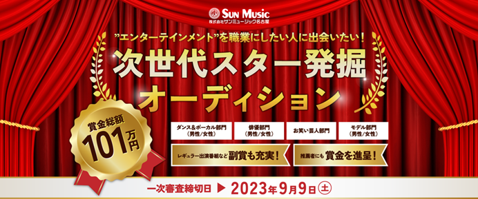 株式会社サンミュージック名古屋オーディションページ(https://sun-music.jp/audition_2023/)
