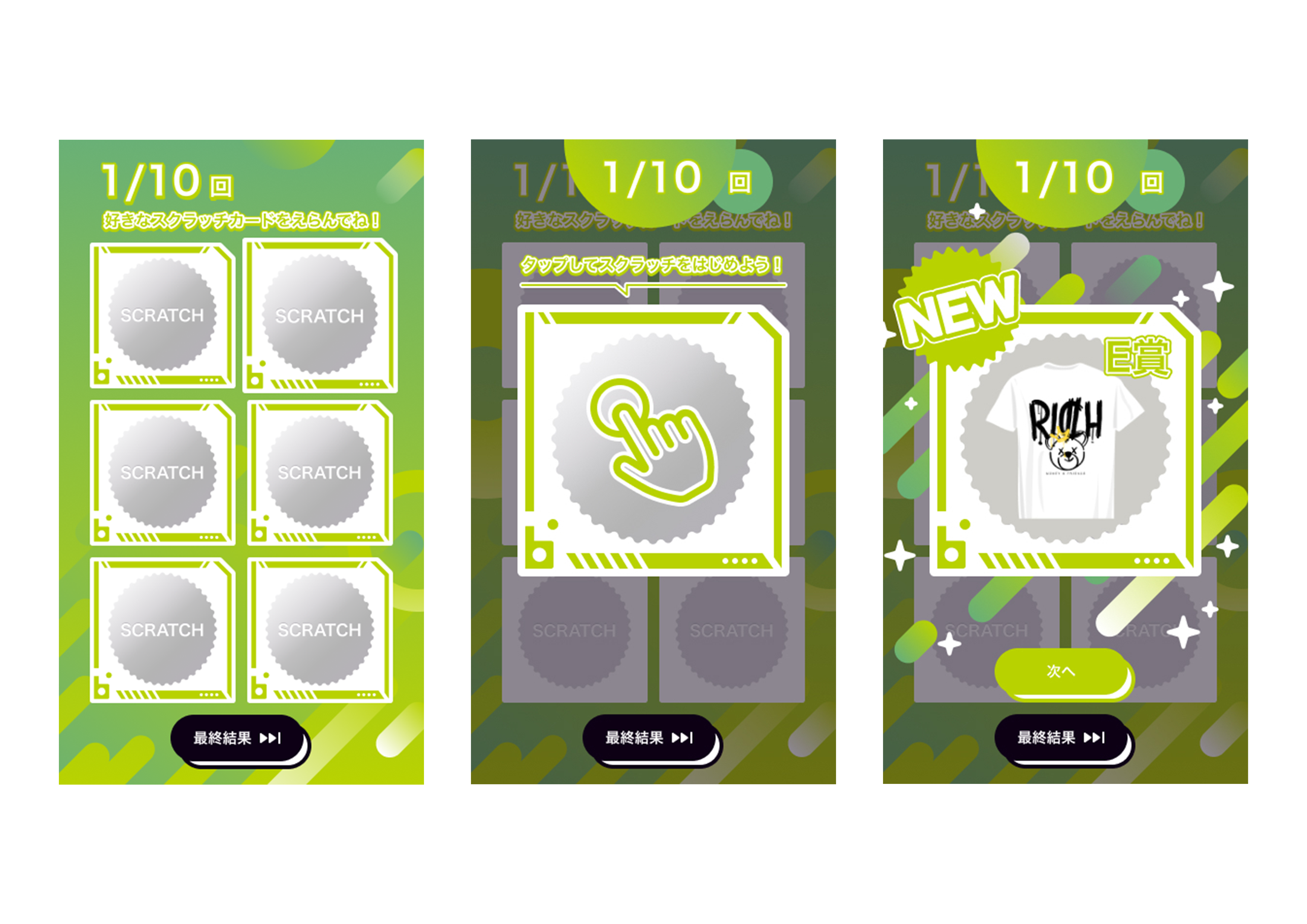 「ずっと楽しみにしていた、スクラッチ!スタート出来て嬉しいです!賞も多種多様なものを用意しています。なにが当たるかドキドキしながら楽しんで貰えたらなと思います!」