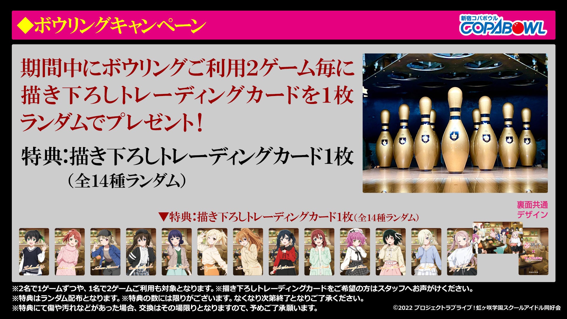 期間中ボウリングご利用2ゲーム毎に描き下ろしトレーディングカードを1枚ランダムでプレゼント!