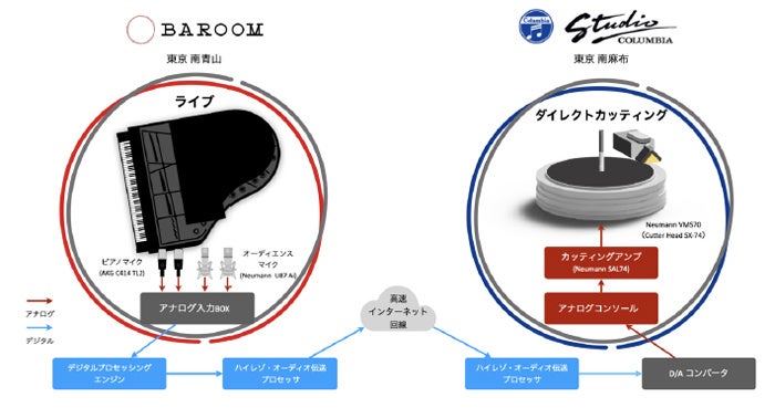 (*1) 100名規模の会場で観客を入れた生演奏において、ネット環境を使った遠隔地からのダイレクト・カッティングは世界初。(当社調べ)